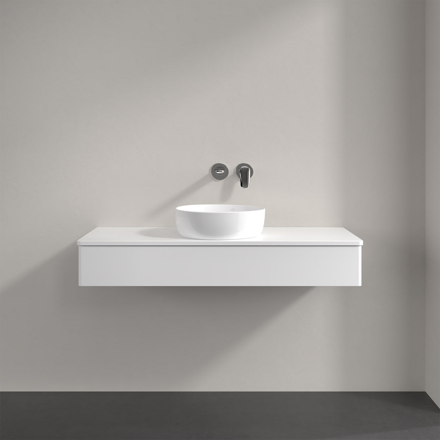 Villeroy & Boch Antao Waschbeckenunterschrank, 120 x 19 cm, 1 Auszug, Front ohne Struktur, mit Hahnloch, für Waschtisch mittig