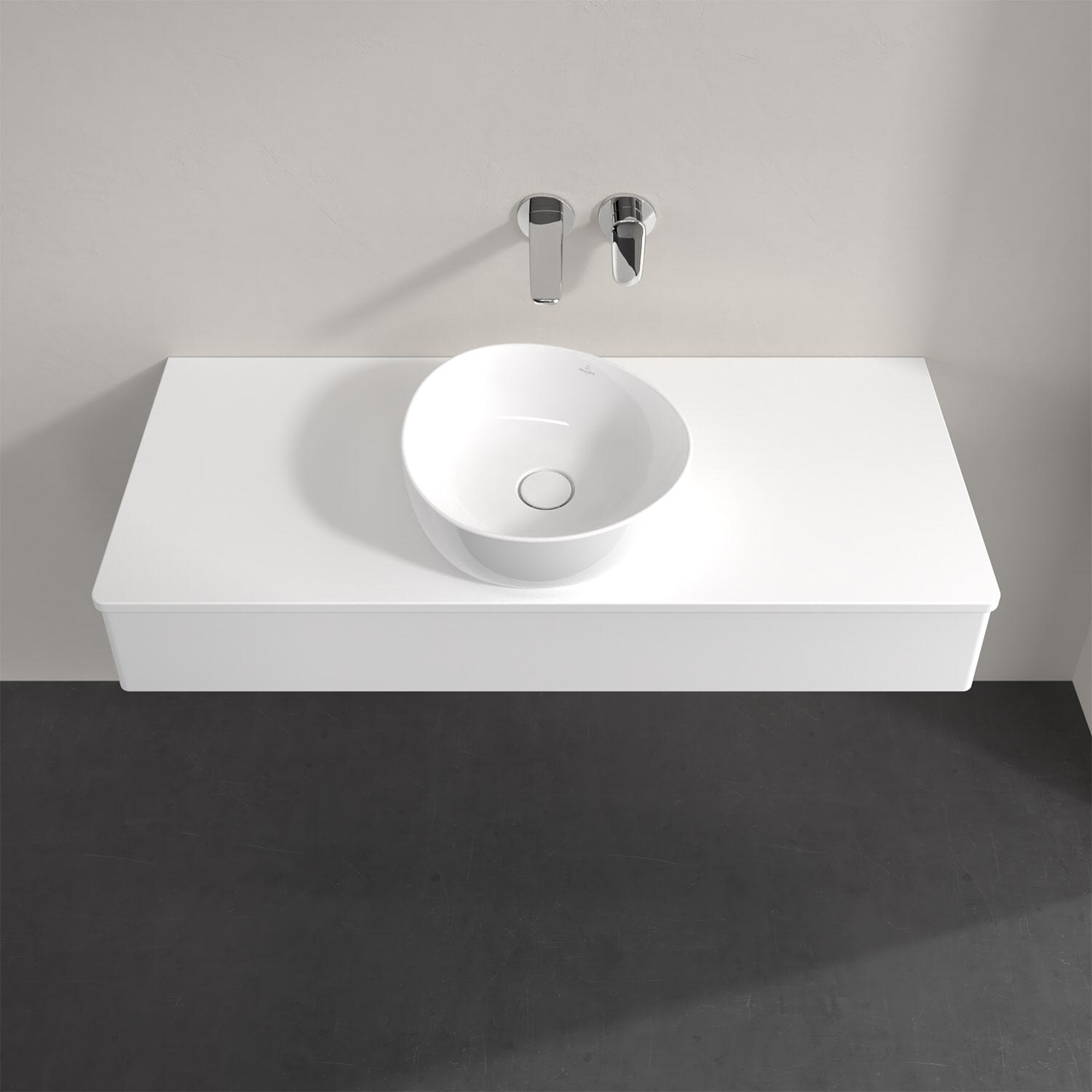 Für diesen Waschbeckenunterschrank stehen Ihnen Aufsatzwaschtische aus verschiedenen Serien zur Verfügung (siehe "Passliste" unter Downloads). Ein ausgewähltes Beispiel finden Sie im Zubehör. Den Waschtisch bitte separat mitbestellen.