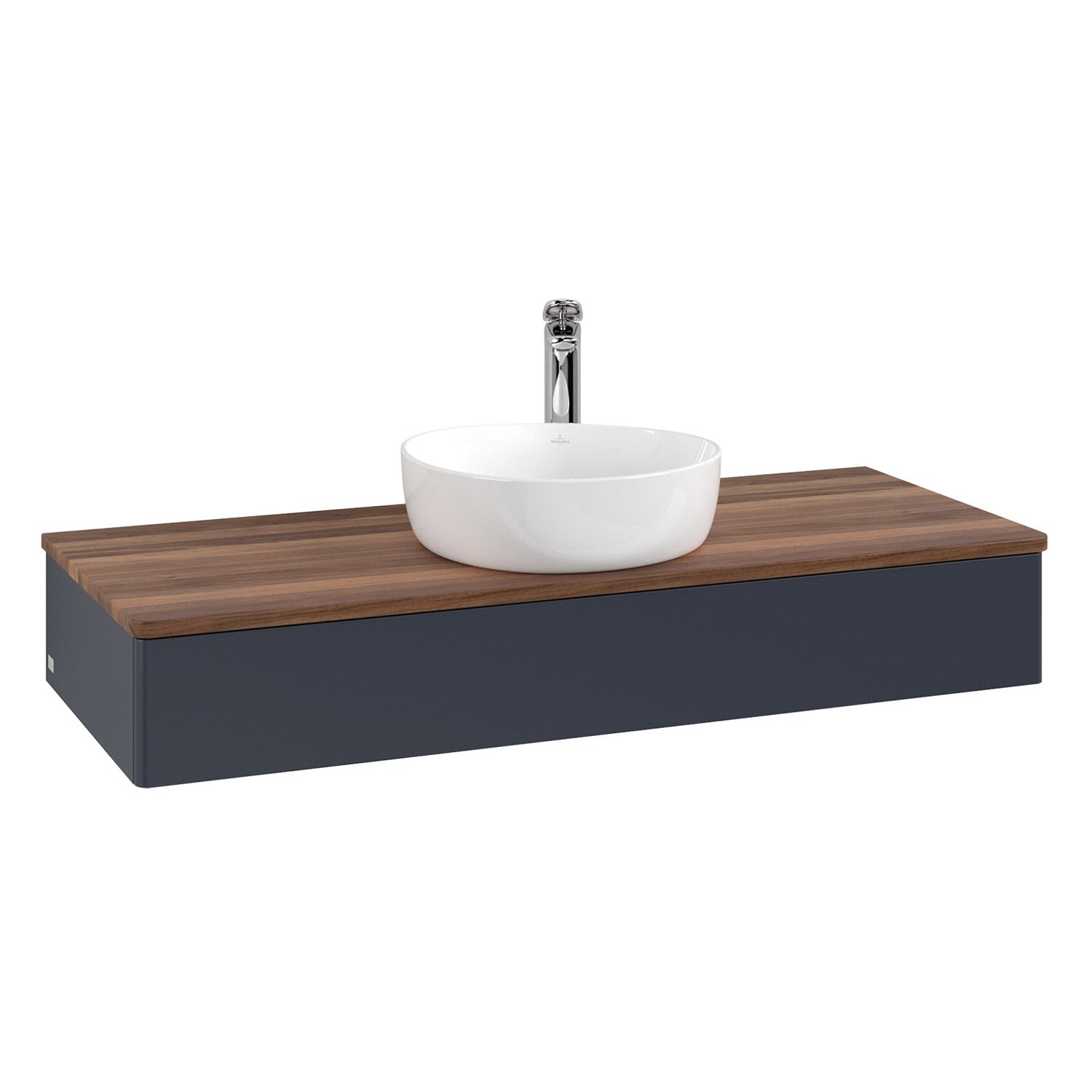 Villeroy & Boch Antao Waschbeckenunterschrank, 120 x 19 cm, 1 Auszug, Front ohne Struktur, mit Hahnloch, für Waschtisch mittig