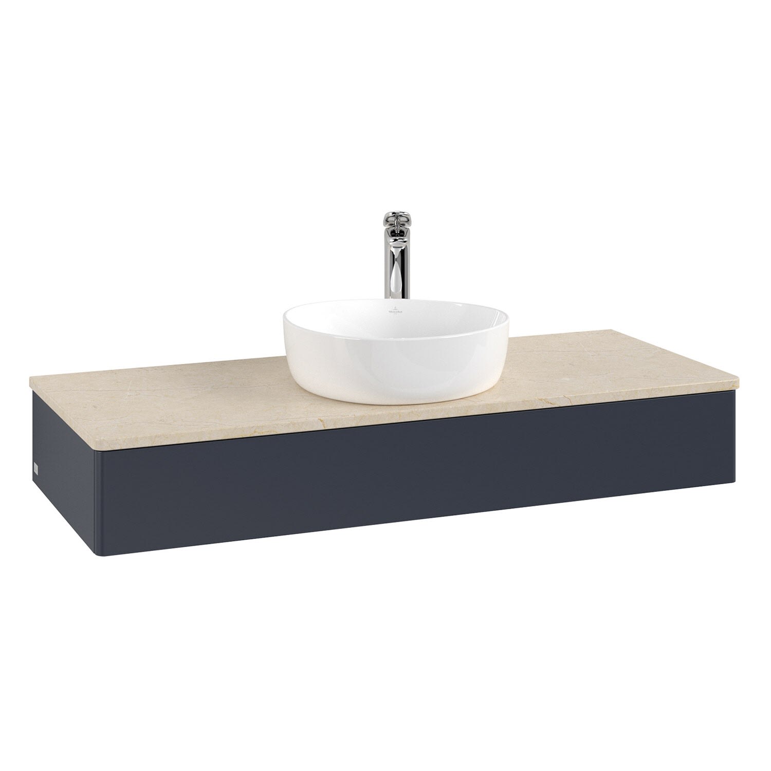 Villeroy & Boch Antao Waschbeckenunterschrank, 120 x 19 cm, 1 Auszug, Front ohne Struktur, mit Hahnloch, für Waschtisch mittig
