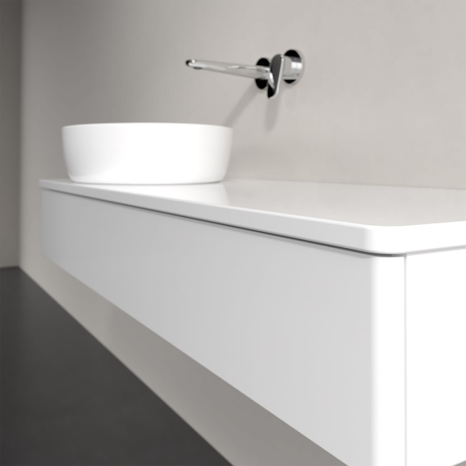 Für diesen Waschbeckenunterschrank stehen Ihnen Aufsatzwaschtische aus verschiedenen Serien zur Verfügung (siehe "Passliste" unter Downloads). Ein ausgewähltes Beispiel finden Sie im Zubehör. Den Waschtisch bitte separat mitbestellen.