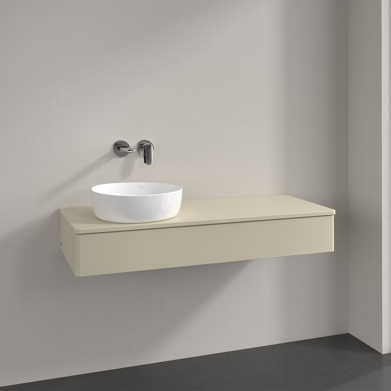 Villeroy & Boch Antao Waschbeckenunterschrank, 120 x 19 cm, 1 Auszug, Front ohne Struktur, mit Hahnloch, für Waschtisch links