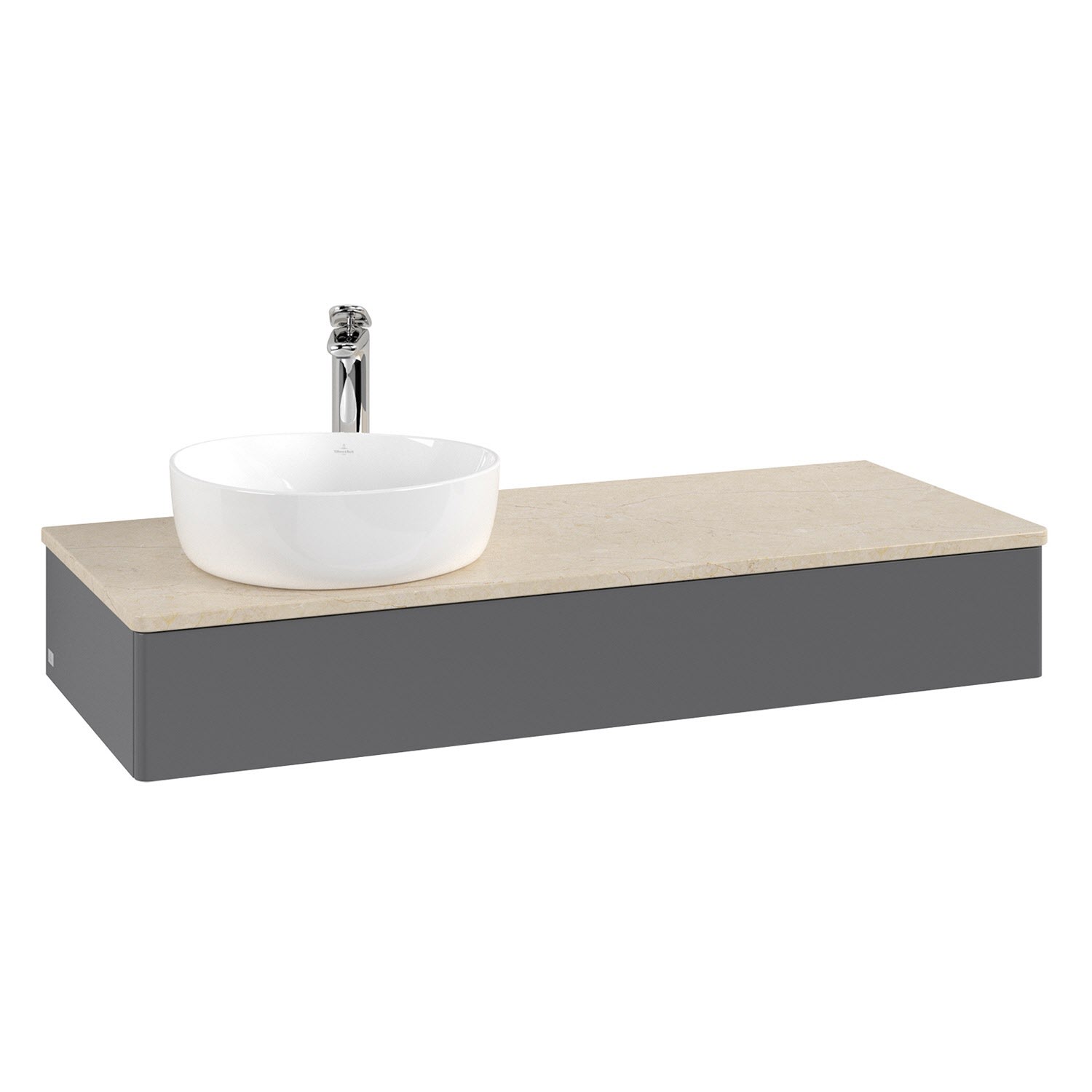 Villeroy & Boch Antao Waschbeckenunterschrank, 120 x 19 cm, 1 Auszug, Front ohne Struktur, mit Hahnloch, für Waschtisch links