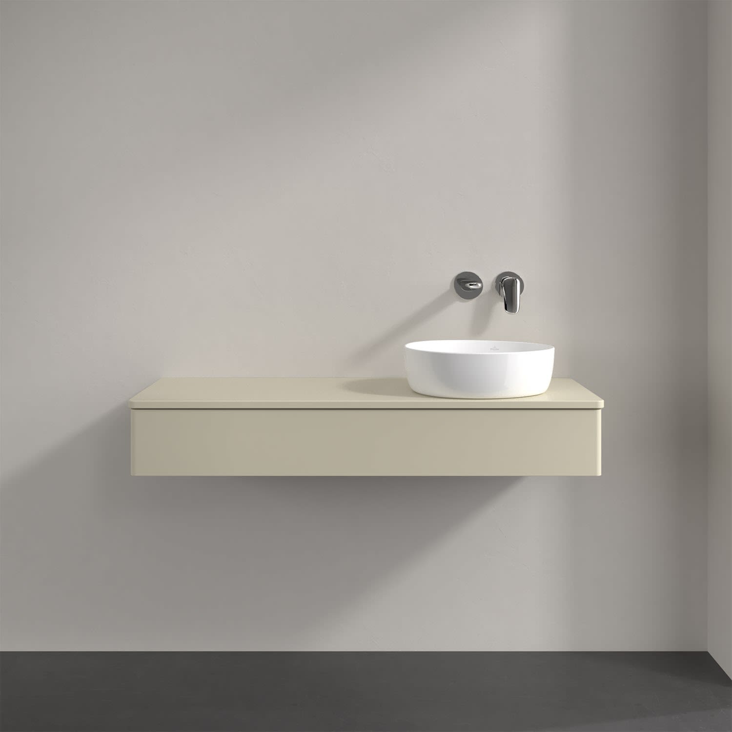 Villeroy & Boch Antao Waschbeckenunterschrank, 120 x 19 cm, 1 Auszug, Front ohne Struktur, mit Hahnloch, für Waschtisch rechts