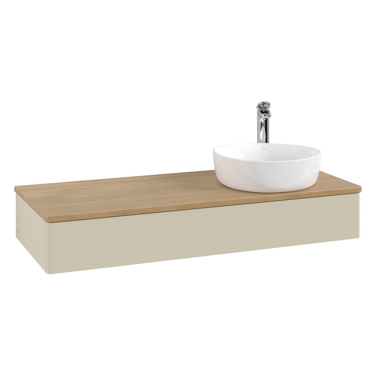 Villeroy & Boch Antao Waschbeckenunterschrank, 120 x 19 cm, 1 Auszug, Front ohne Struktur, mit Hahnloch, für Waschtisch rechts