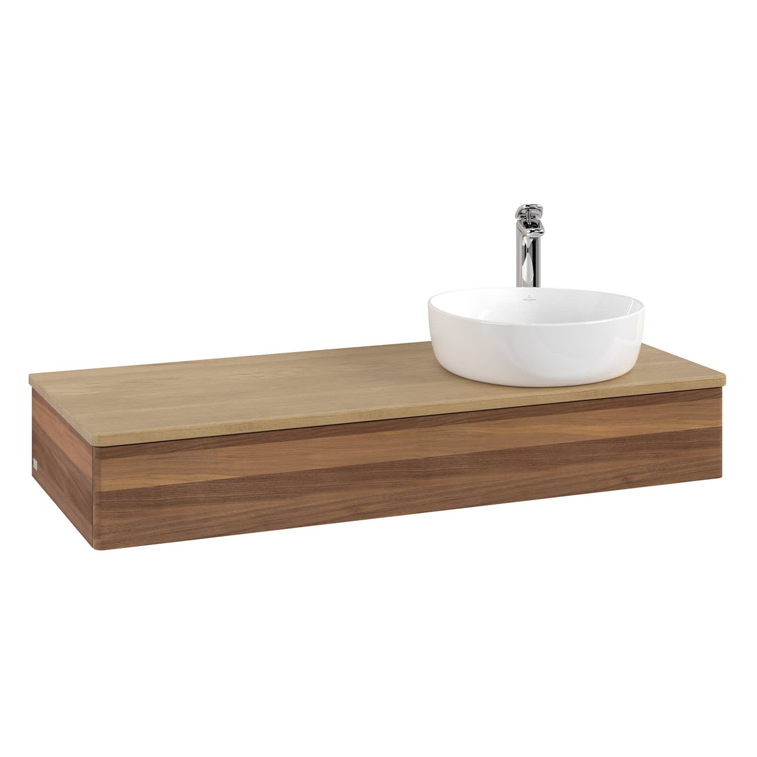 Villeroy & Boch Antao Waschbeckenunterschrank, 120 x 19 cm, 1 Auszug, Front ohne Struktur, mit Hahnloch, für Waschtisch rechts