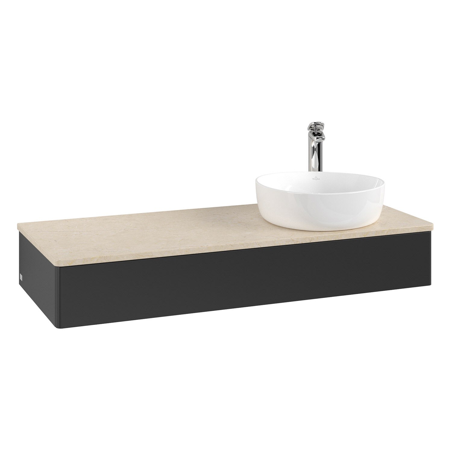Villeroy & Boch Antao Waschbeckenunterschrank, 120 x 19 cm, 1 Auszug, Front ohne Struktur, mit Hahnloch, für Waschtisch rechts