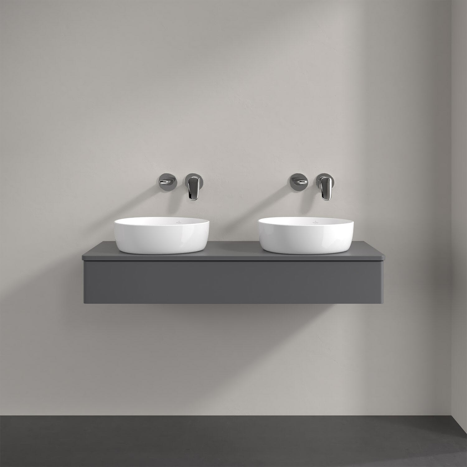 Villeroy & Boch Antao Waschbeckenunterschrank, 120 x 19 cm, 1 Auszug, Front ohne Struktur, mit Hahnloch, für Waschtisch links und rechts