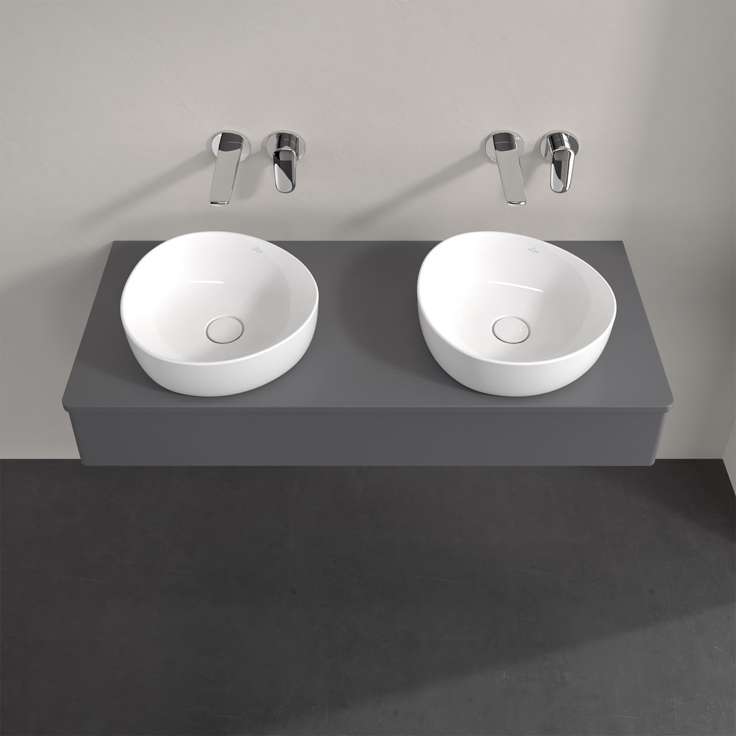 Für diesen Waschbeckenunterschrank stehen Ihnen Aufsatzwaschtische aus verschiedenen Serien zur Verfügung (siehe "Passliste" unter Downloads). Ein ausgewähltes Beispiel finden Sie im Zubehör. Den Waschtisch bitte separat mitbestellen.