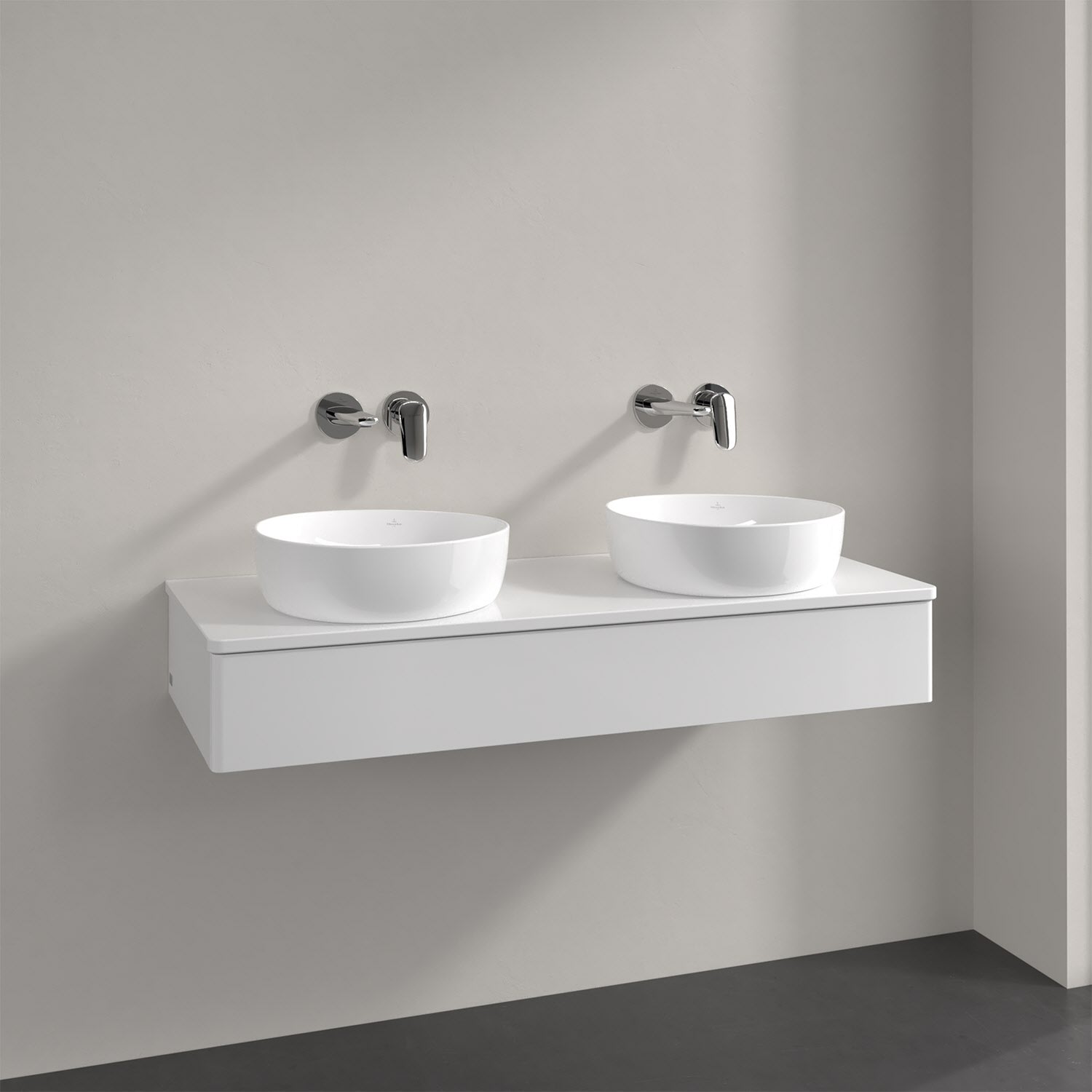 Villeroy & Boch Antao Waschbeckenunterschrank, 120 x 19 cm, 1 Auszug, Front ohne Struktur, mit Hahnloch, für Waschtisch links und rechts