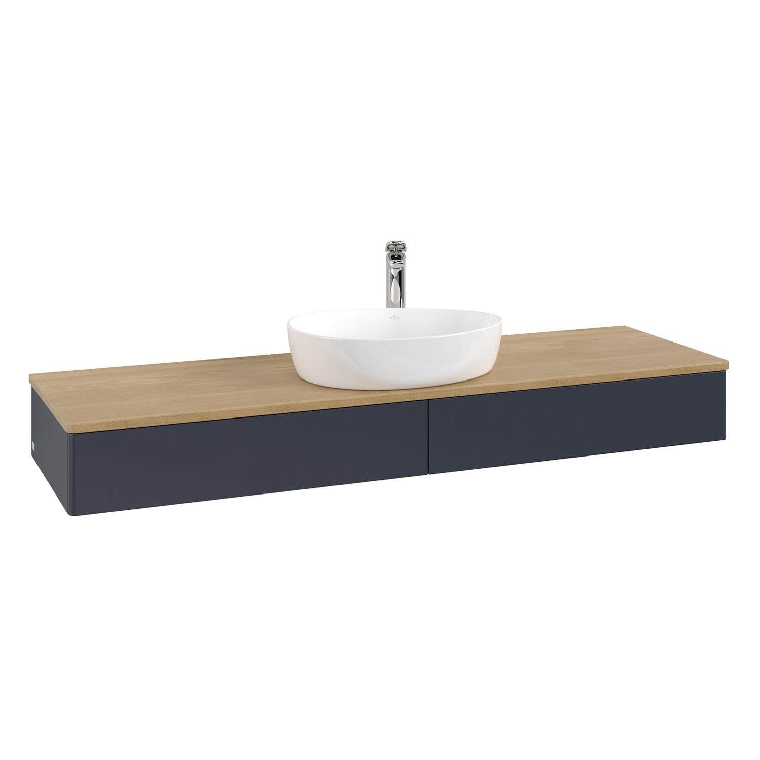 Villeroy & Boch Antao Waschbeckenunterschrank, 160 x 19 cm, 2 Auszüge, Front ohne Struktur, mit Hahnloch, für Waschtisch mittig