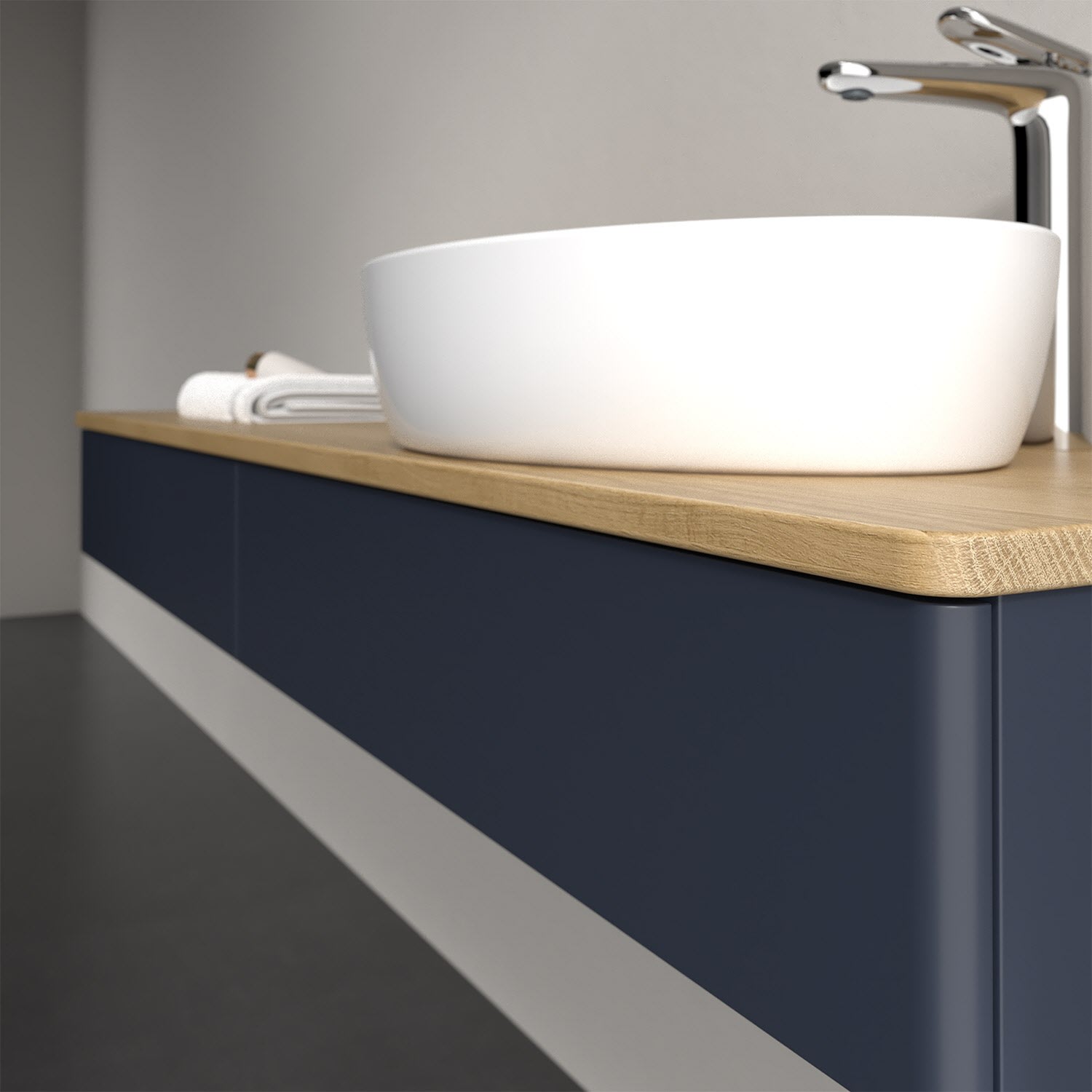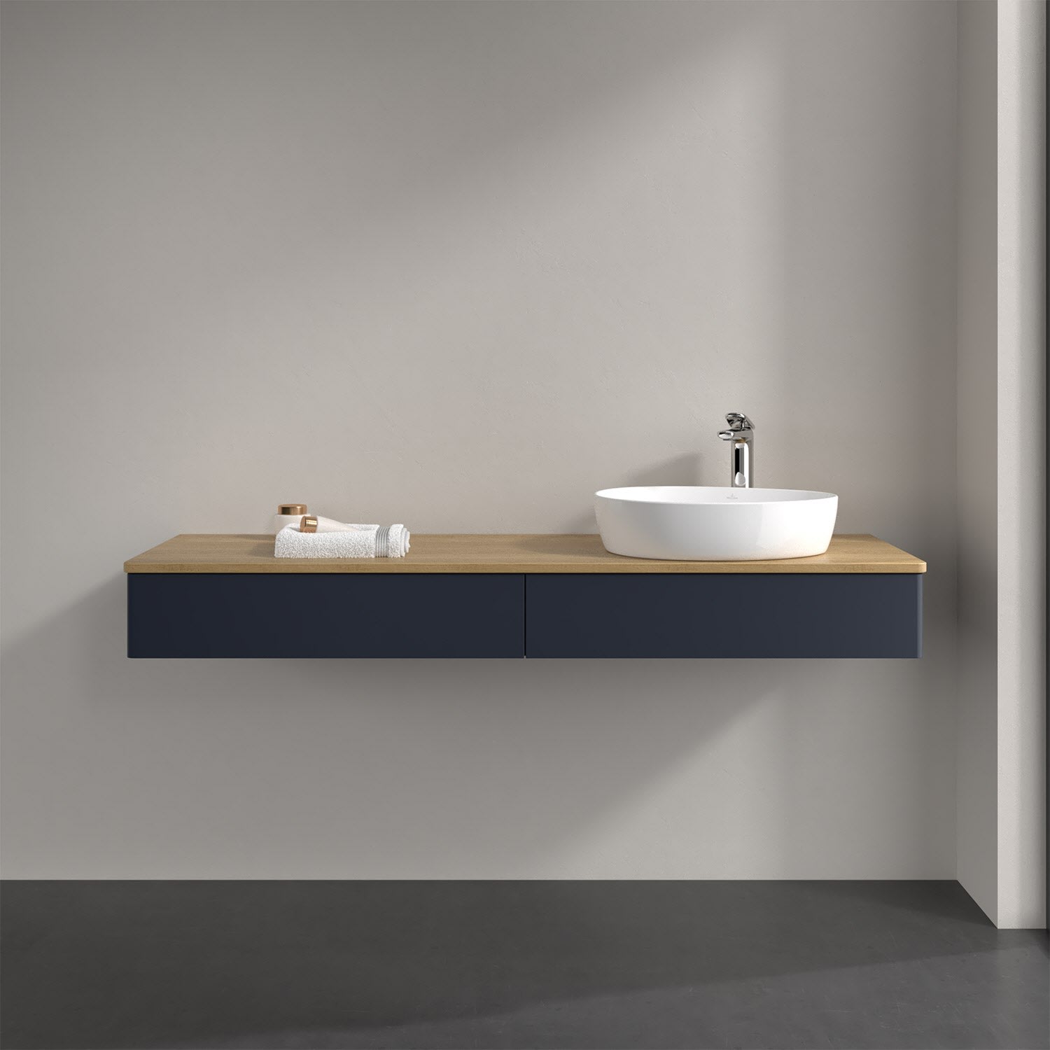 Villeroy & Boch Antao Waschbeckenunterschrank, 160 x 19 cm, 2 Auszüge, Front ohne Struktur, mit Hahnloch, für Waschtisch rechts