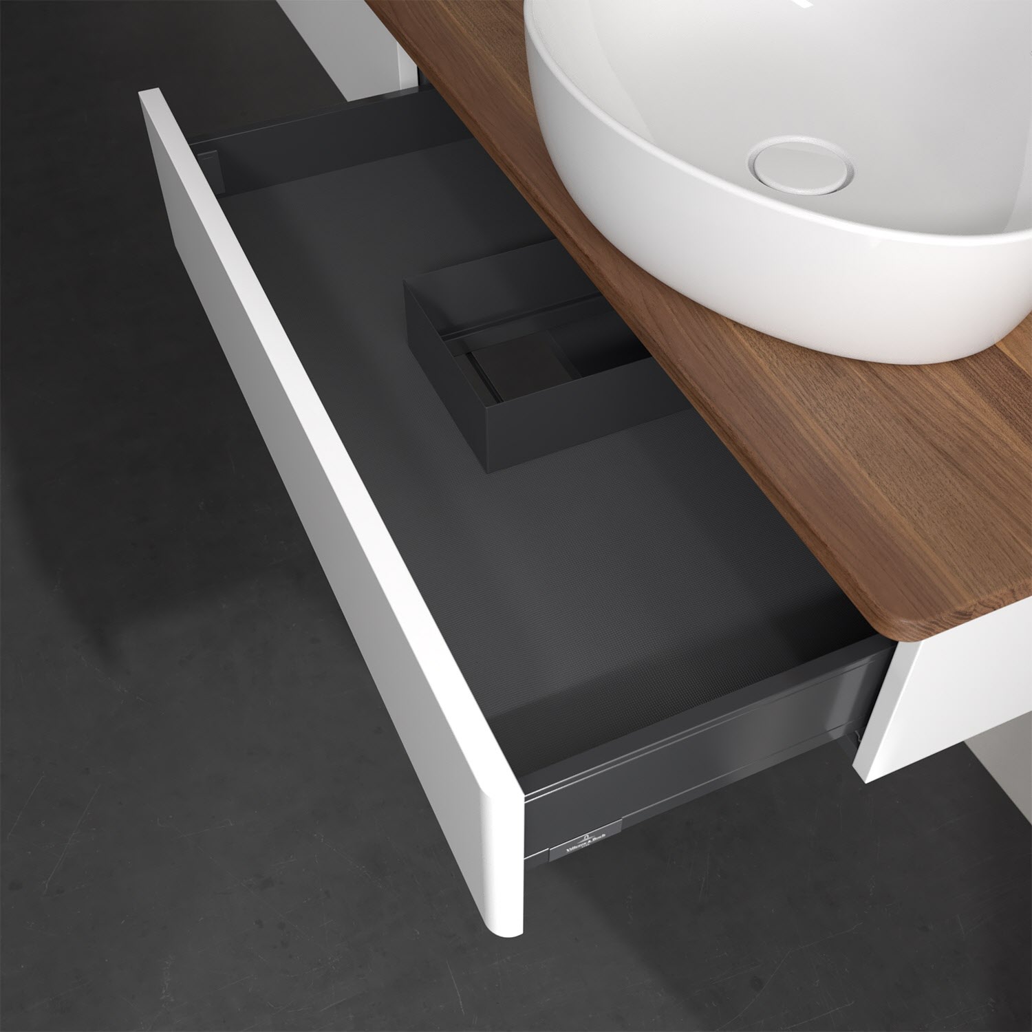 Villeroy & Boch Antao Waschbeckenunterschrank, 160 x 19 cm, 2 Auszüge, Front ohne Struktur, mit Hahnloch, für Waschtisch rechts
