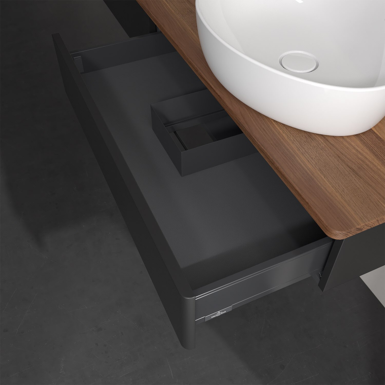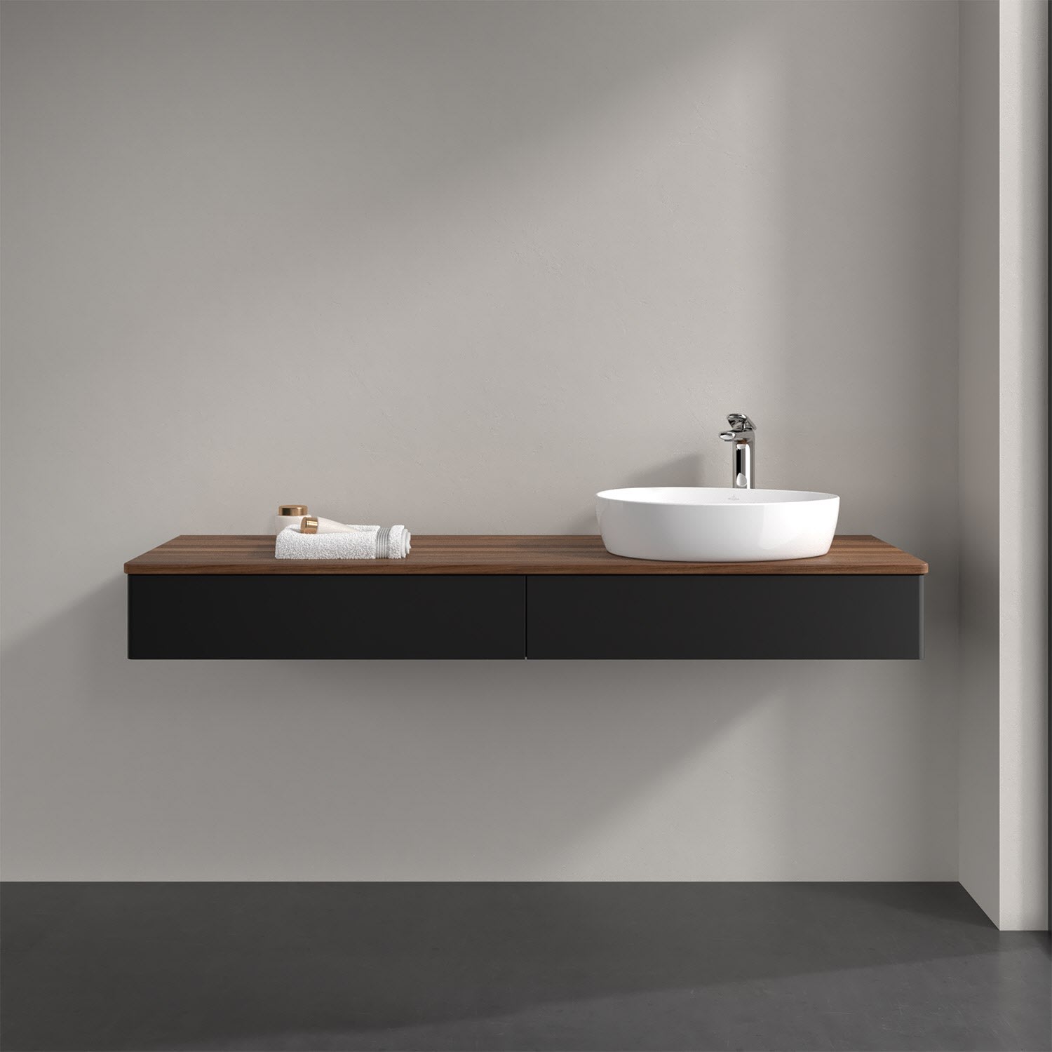 Villeroy & Boch Antao Waschbeckenunterschrank, 160 x 19 cm, 2 Auszüge, Front ohne Struktur, mit Hahnloch, für Waschtisch rechts