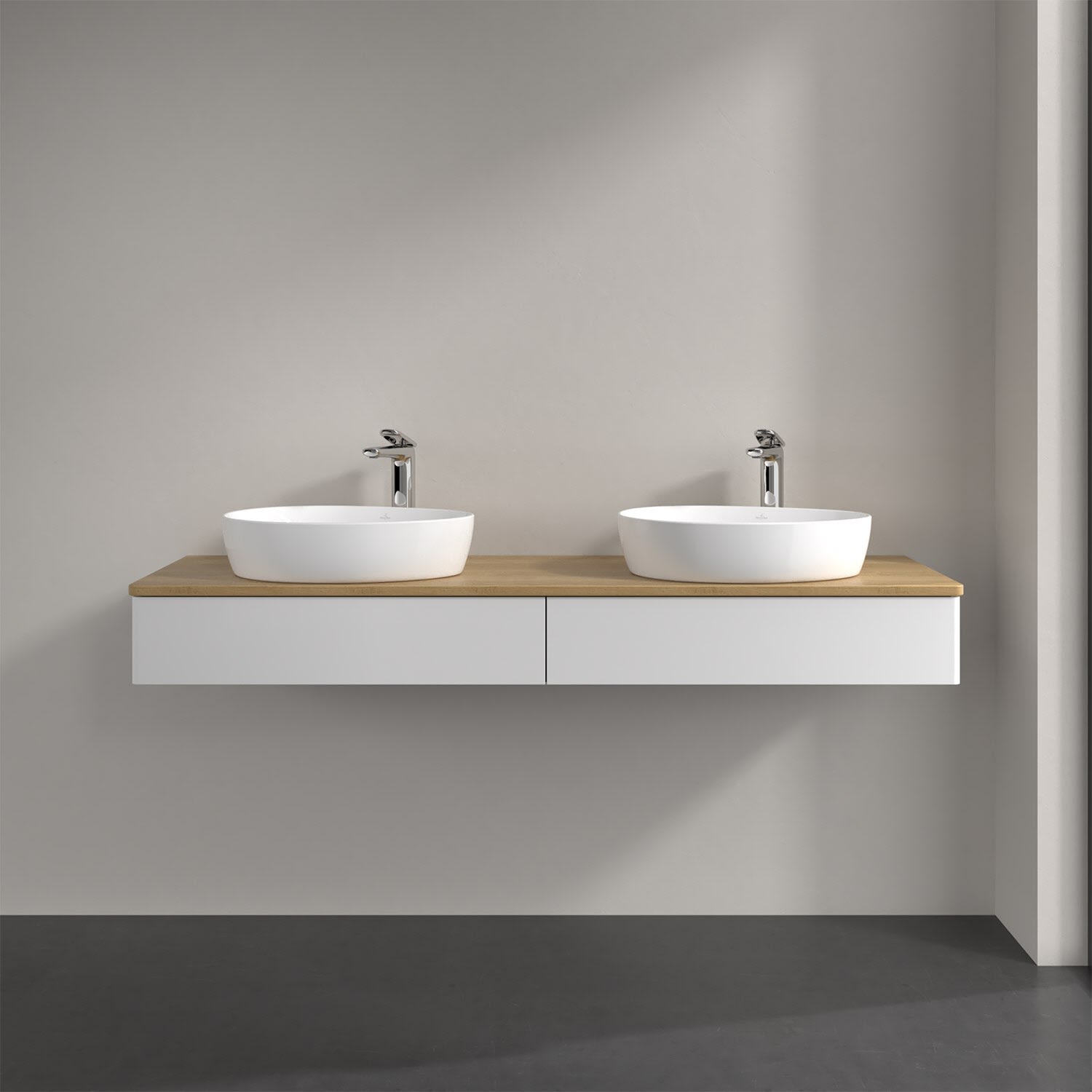 Der wandhängende Antao Waschtischunterschrank von Villeroy & Boch bietet nicht nur jede Menge Stauraum – er ist dank seines naturinspirierten Designs mit seinen abgerundeten Kanten auch noch besonders stilvoll und schafft eine gemütliche Atmosphäre im Badezimmer. Kombiniert mit zwei passenden Aufsatzwaschtischen also die ideale Wahl. Der geräumige Auszug bietet viel Platz, um alles Notwendige zu verstauen und Ordnung zu halten. Öffnen lässt er sich durch leichten Druck auf die grifflose Front. Dank Vollauszug hat man immer alles im Blick und der Antirutschboden verhindert ein Umfallen oder Verrutschen der Gegenstände. Einfach clever! Für eine besonders leichte Pflege sorgt die mehrschichtig deckend lackierte Oberfläche. Bei der Ausführung in Massivholz wird dank des verarbeiteten Massivholzes jedes Möbel zu einem Unikat, das sich durch das lebendige Naturmaterial durch seine einzigartige Struktur und Maserung auszeichnet.
