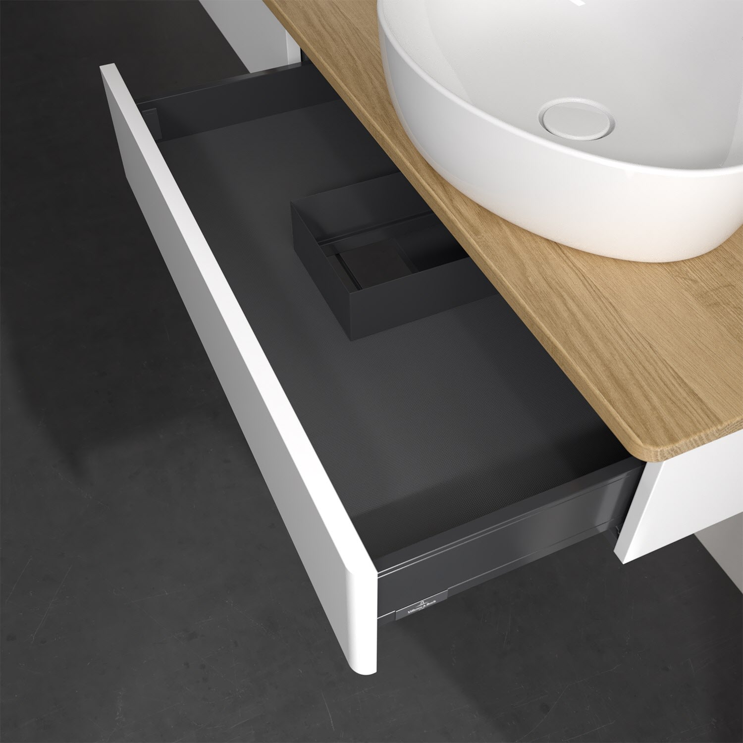 - kein Umfallen oder Verrutschen von Pflegeprodukten in den Schubladen dank rutschhemmendem Boden