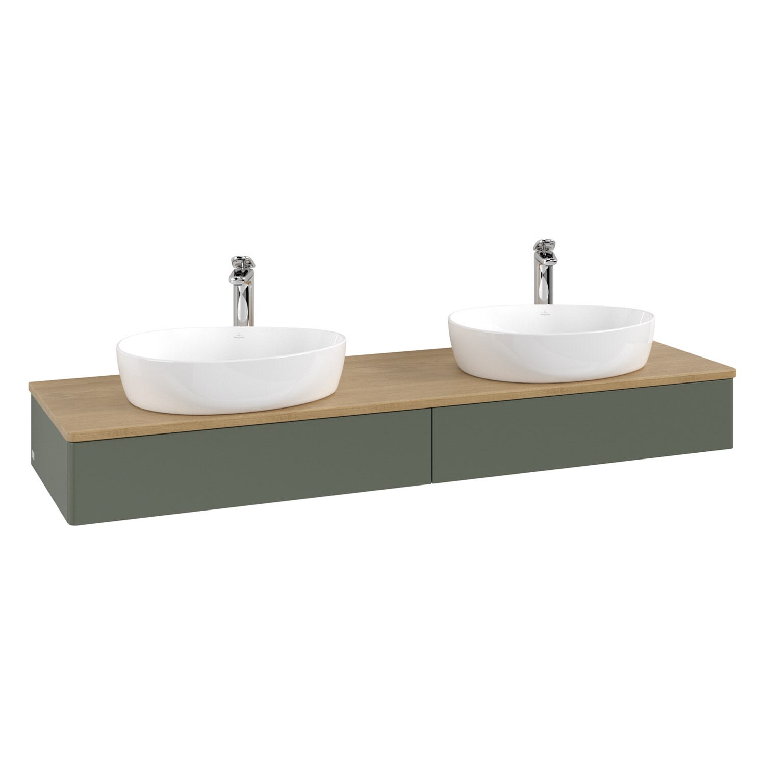 Villeroy & Boch Antao Waschbeckenunterschrank, 160 x 19 cm, 2 Auszüge, Front ohne Struktur, mit Hahnloch, für Waschtisch links und rechts