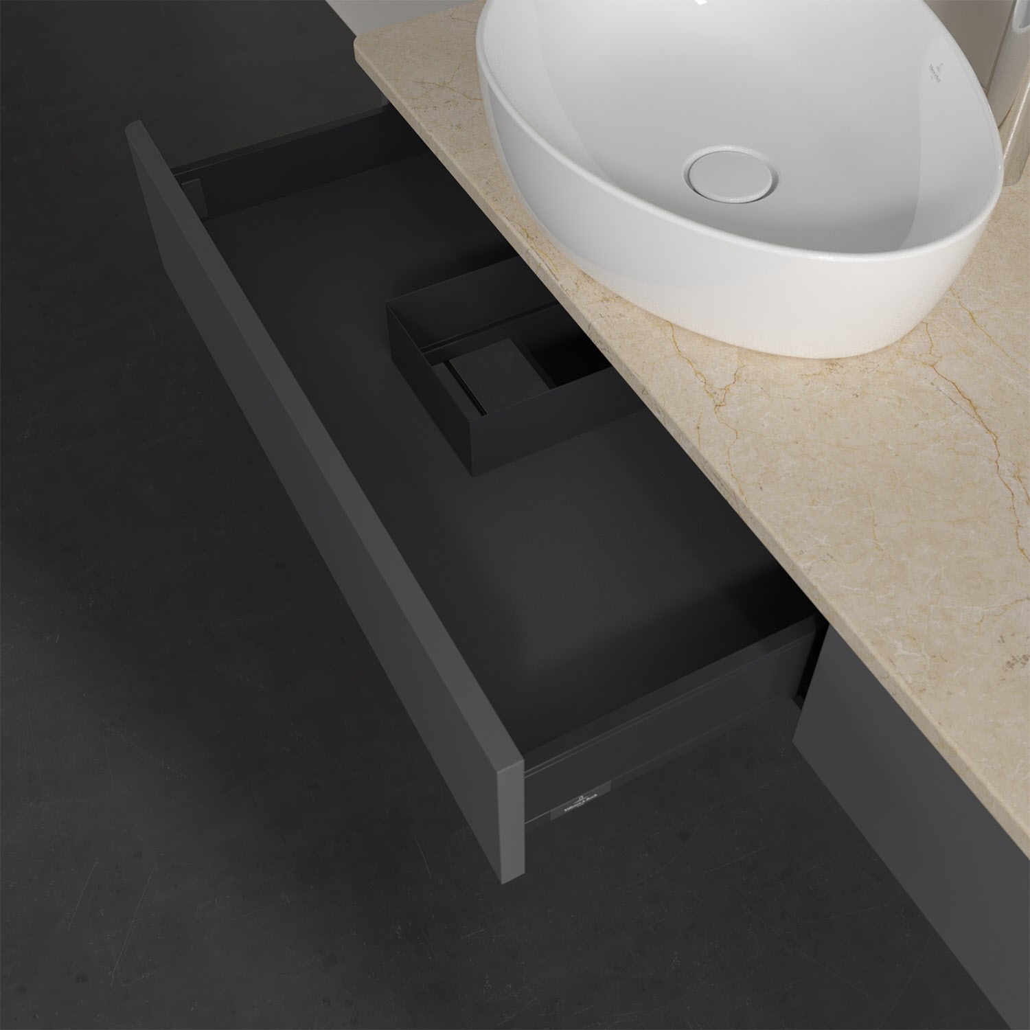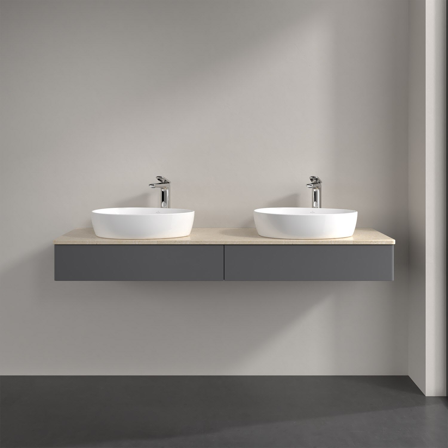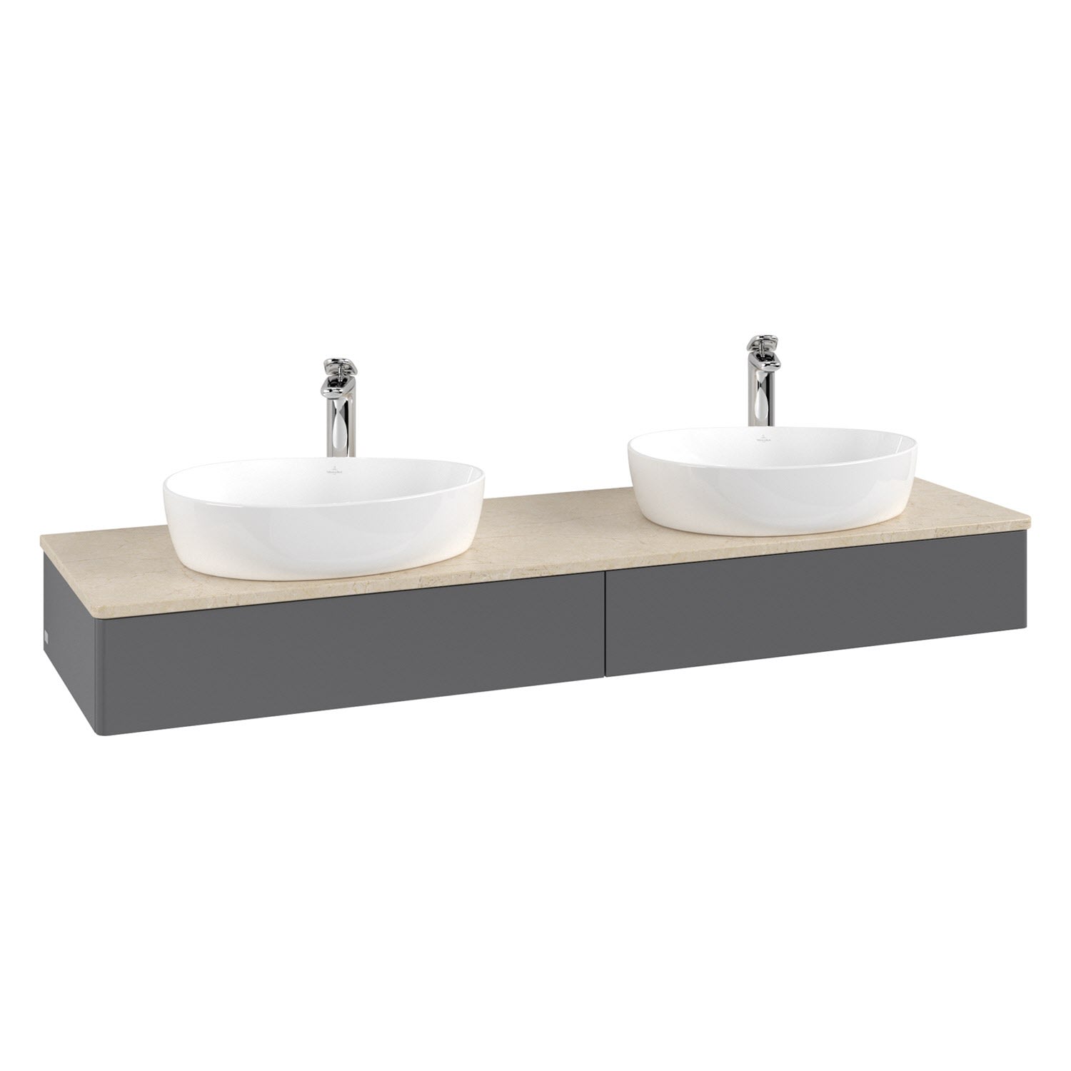 Villeroy & Boch Antao Waschbeckenunterschrank, 160 x 19 cm, 2 Auszüge, Front ohne Struktur, mit Hahnloch, für Waschtisch links und rechts