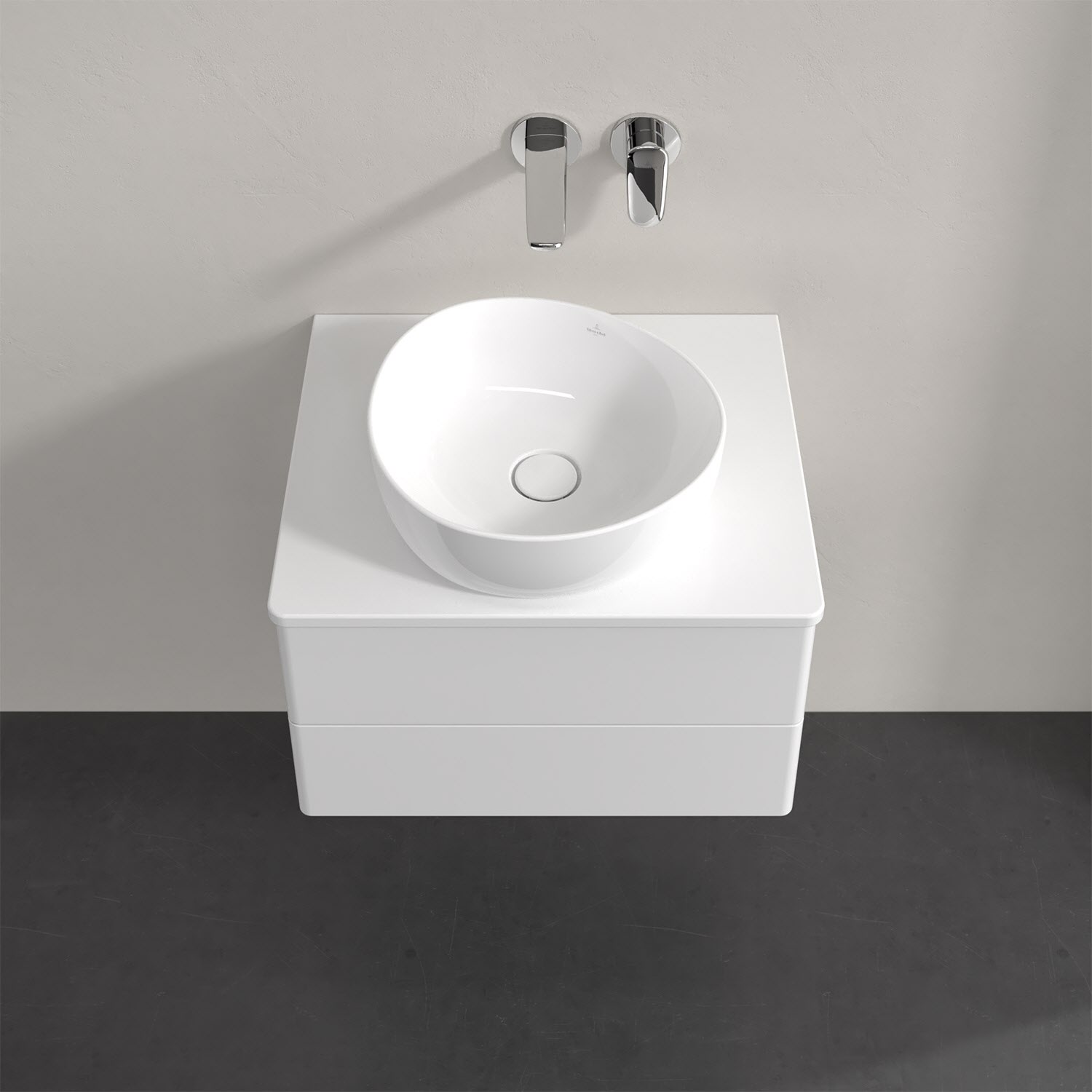 Für diesen Waschbeckenunterschrank stehen Ihnen Aufsatzwaschtische aus verschiedenen Serien zur Verfügung (siehe "Passliste" unter Downloads). Ein ausgewähltes Beispiel finden Sie im Zubehör. Den Waschtisch bitte separat mitbestellen.