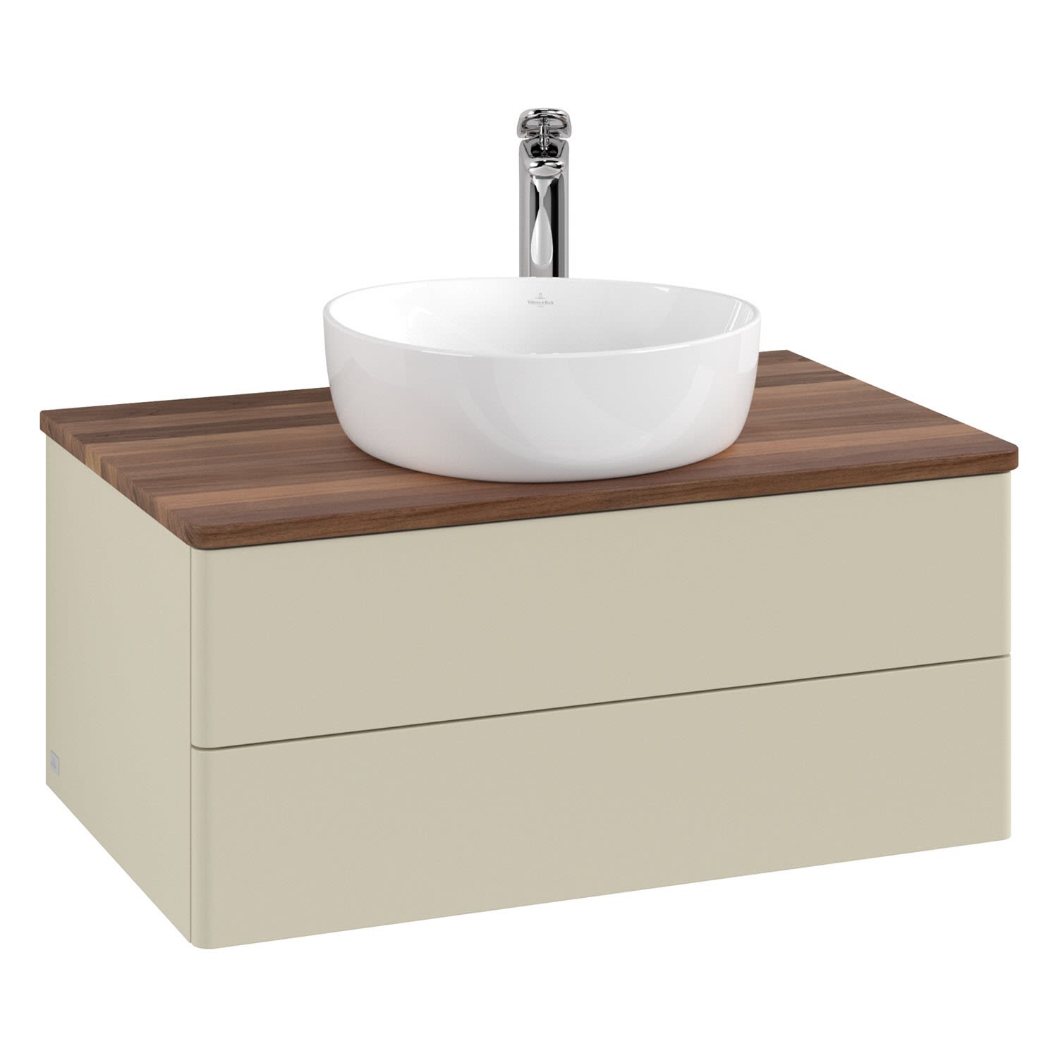 Villeroy & Boch Antao Waschbeckenunterschrank, 80 x 19 cm, 2 Auszüge, Fronten ohne Struktur, mit Hahnloch
