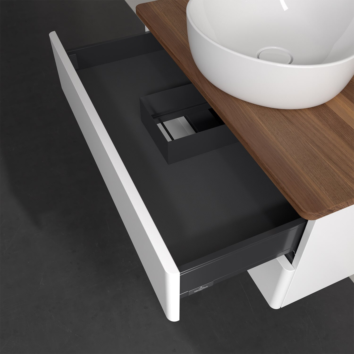 Für diesen Waschbeckenunterschrank stehen Ihnen Aufsatzwaschtische aus verschiedenen Serien zur Verfügung (siehe "Passliste" unter Downloads). Ein ausgewähltes Beispiel finden Sie im Zubehör. Den Waschtisch bitte separat mitbestellen.