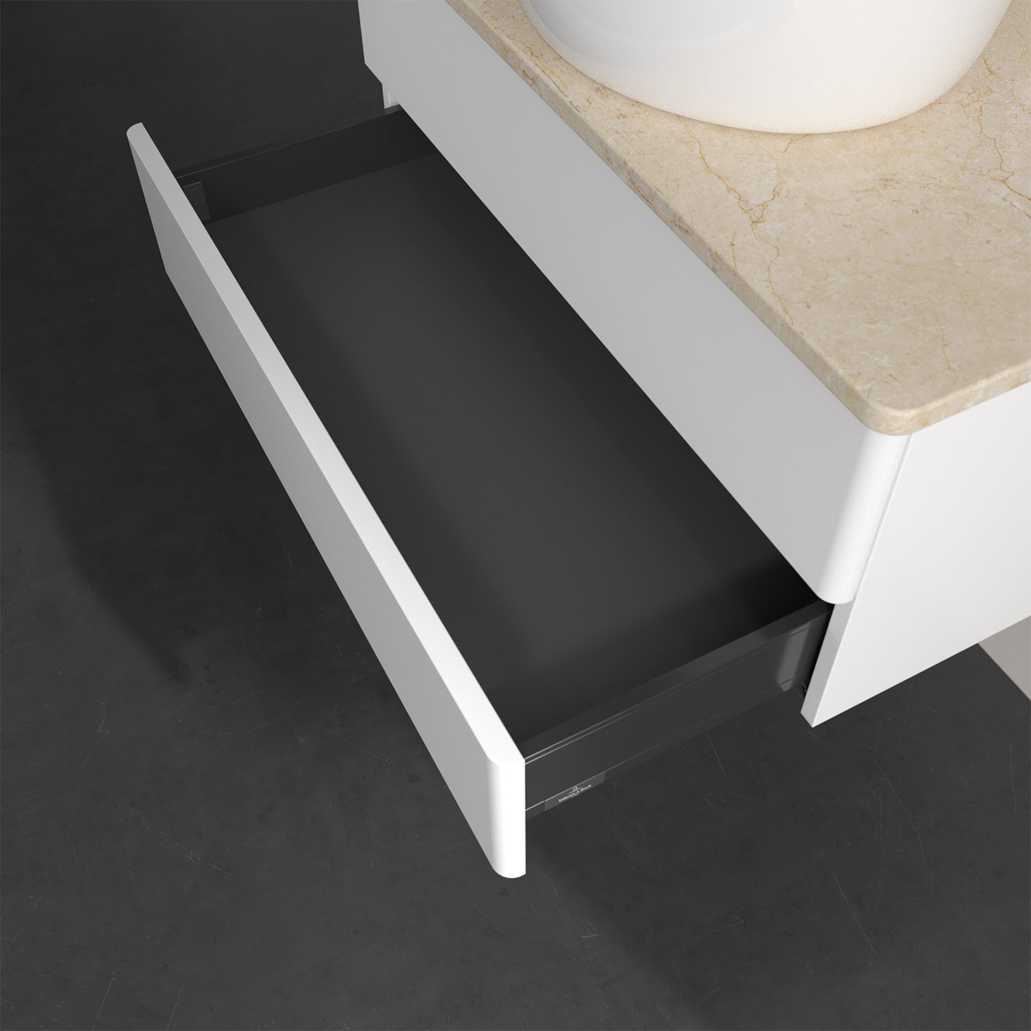 - kein Umfallen oder Verrutschen von Pflegeprodukten in den Schubladen dank rutschhemmendem Boden