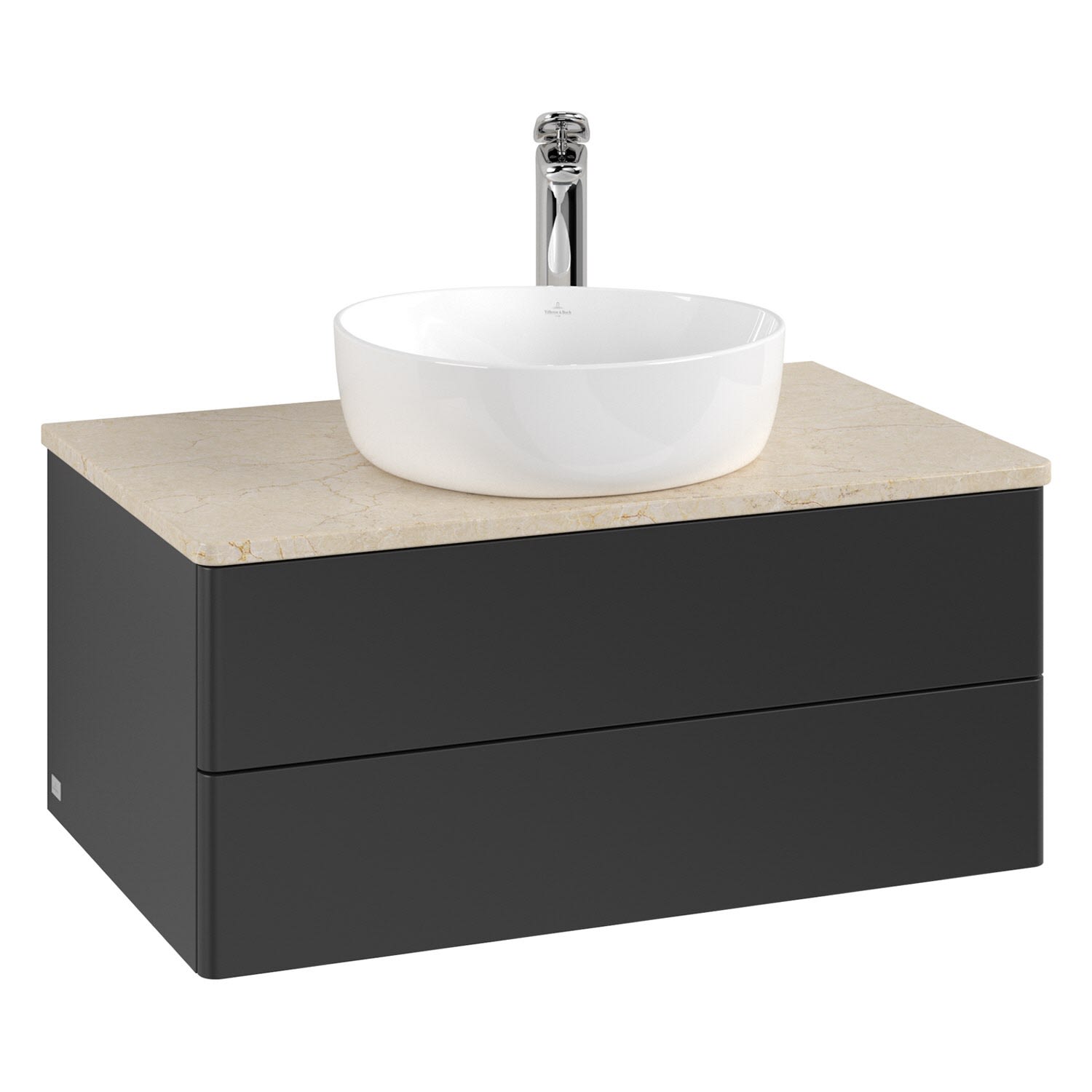 Villeroy & Boch Antao Waschbeckenunterschrank, 80 x 19 cm, 2 Auszüge, Fronten ohne Struktur, mit Hahnloch