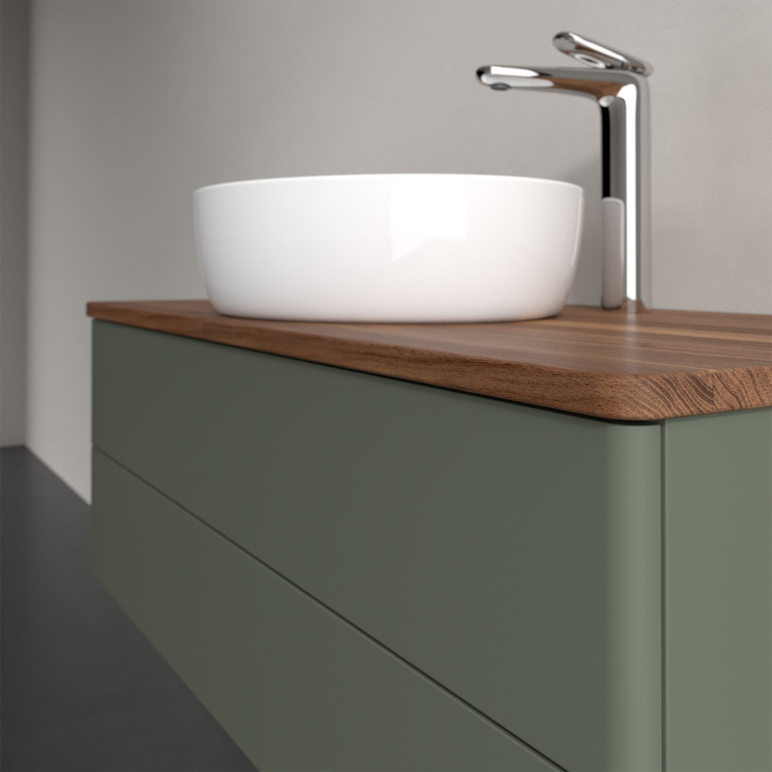 Mit dem wandhängenden Antao Waschtischunterschrank entscheidet man sich für eine hochwertige und praktische Stauraumlösung, die viel Freude bereitet. Die Funktionen sind besonders gut durchdacht: Im Inneren der beiden vollausziehbaren Auszüge können Handtücher, Kosmetik oder andere Pflegeprodukte dank des Antirutschbodens bequem aufbewahrt werden. Geöffnet wird das Möbel durch leichten Druck auf die grifflose Front. Natürlich verfügen die Auszüge über eingebaute Dämpfer, die sie anschließend wieder sanft und leise schließen lassen. Auch auf der Waschtischplatte finden die wichtigsten Utensilien seitlich des Waschtischs genügend Platz. Optisch sorgt der Unterschrank von Villeroy & Boch mit seinen abgerundeten Kanten für ein modernes, gemütliches Ambiente. Für eine besonders leichte Pflege sorgt die mehrschichtig deckend lackierte Oberfläche. Bei der Ausführung in Massivholz wird dank des verarbeiteten Massivholzes jedes Möbel zu einem Unikat, das sich durch das lebendige Naturmaterial durch seine einzigartige Struktur und Maserung auszeichnet.