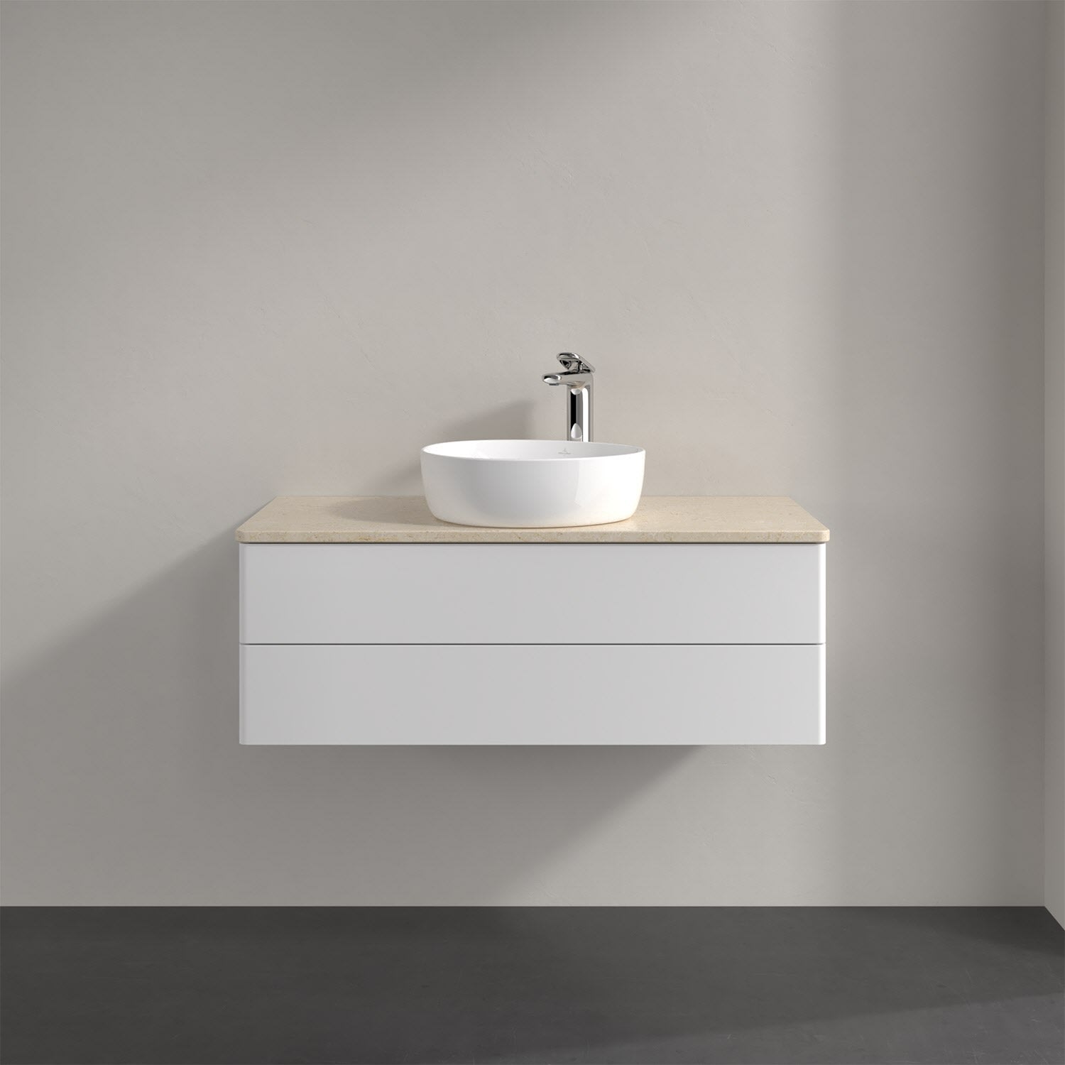 Villeroy & Boch Antao Waschbeckenunterschrank, 100 x 19 cm, 2 Auszüge, Fronten ohne Struktur, mit Hahnloch