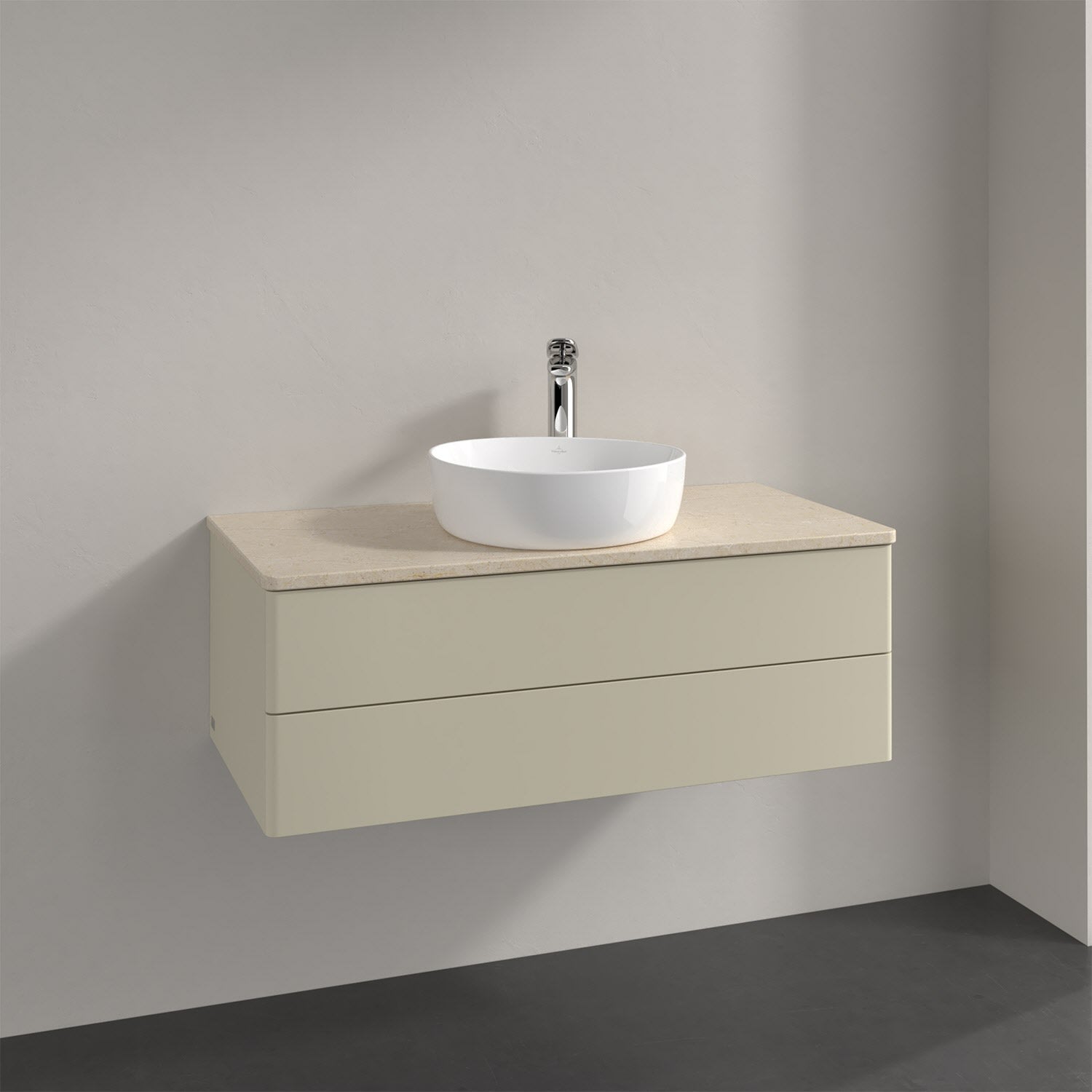 Villeroy & Boch Antao Waschbeckenunterschrank, 100 x 19 cm, 2 Auszüge, Fronten ohne Struktur, mit Hahnloch