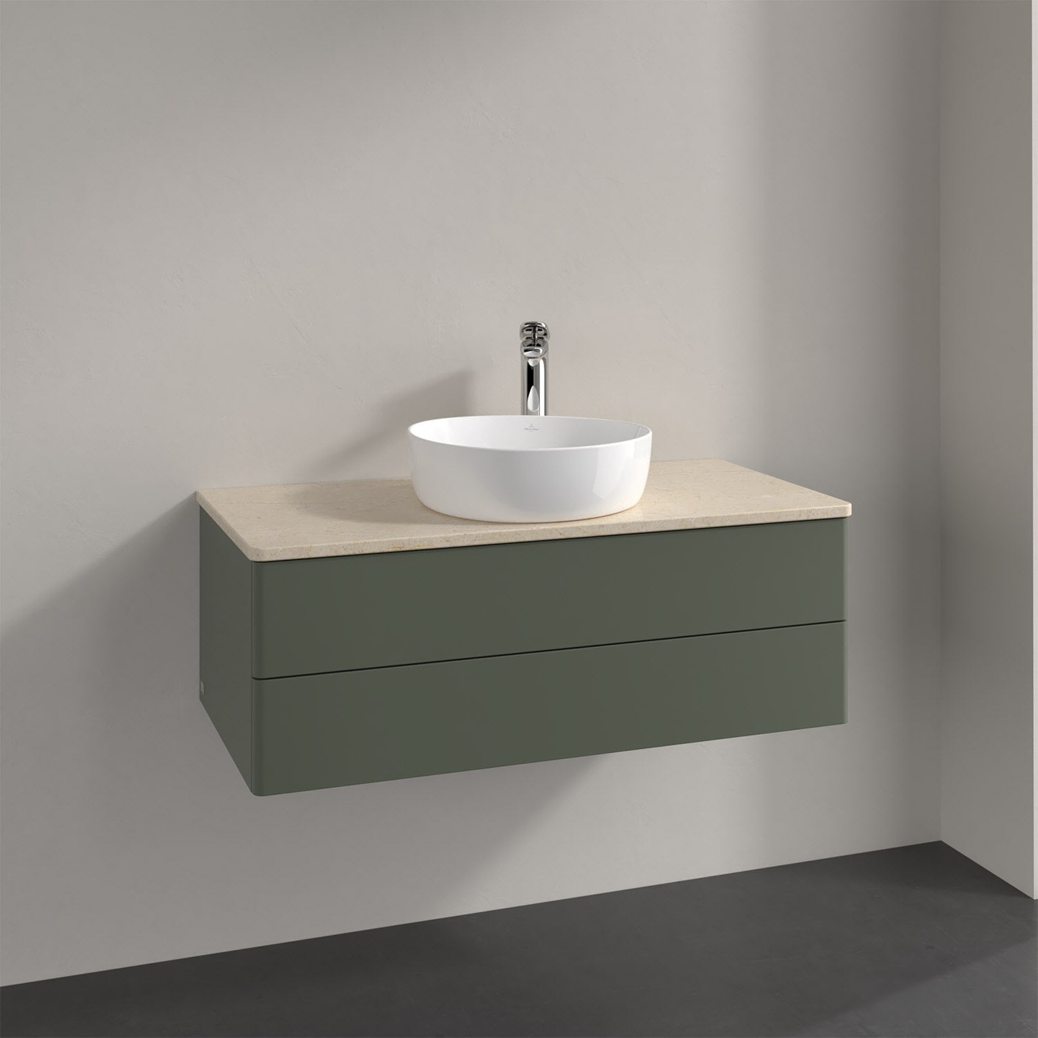 Villeroy & Boch Antao Waschbeckenunterschrank, 100 x 19 cm, 2 Auszüge, Fronten ohne Struktur, mit Hahnloch