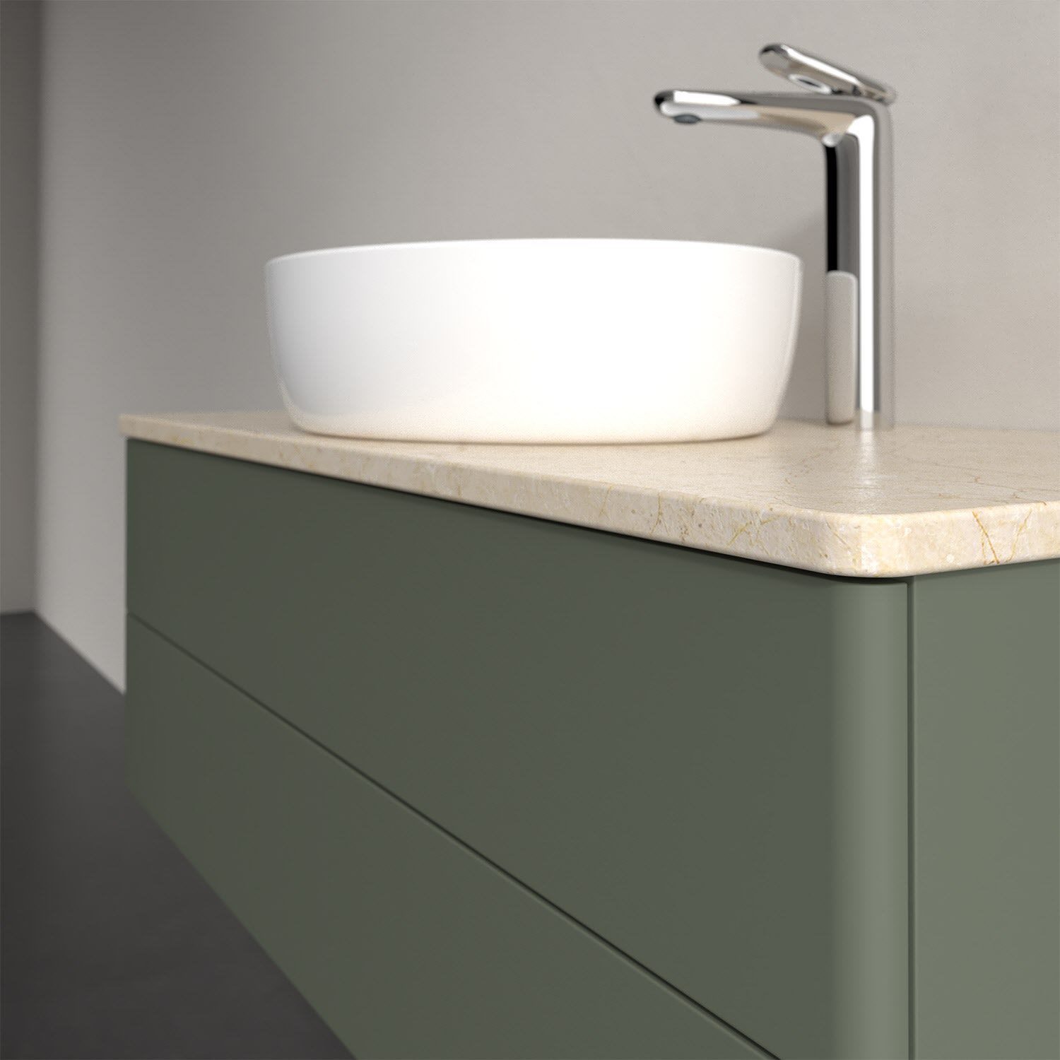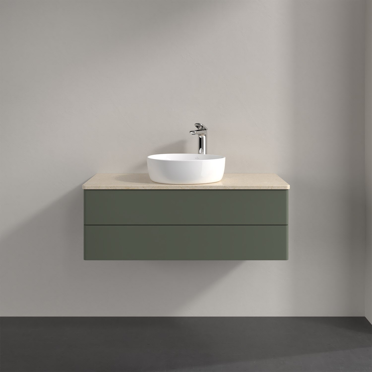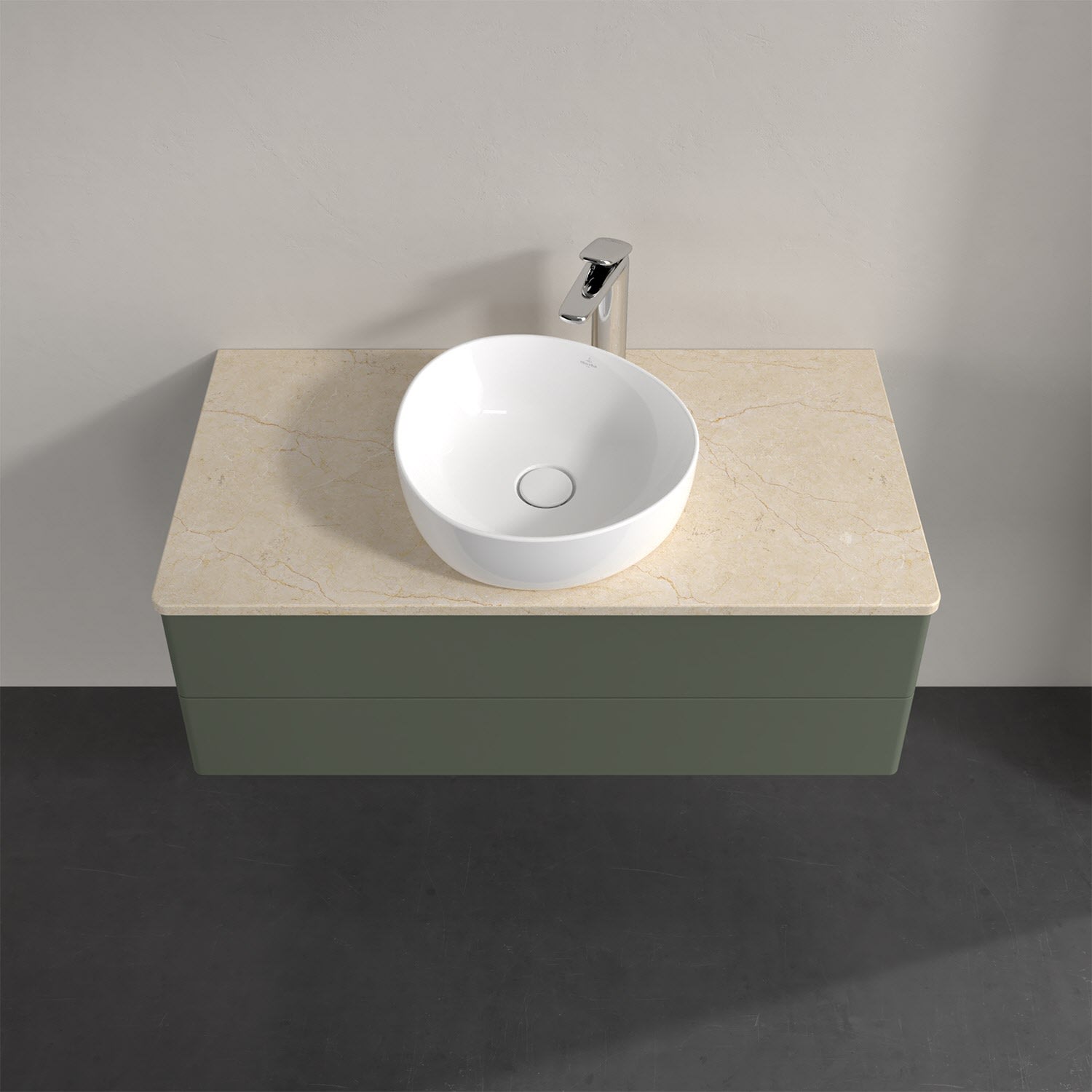 Für diesen Waschbeckenunterschrank stehen Ihnen Aufsatzwaschtische aus verschiedenen Serien zur Verfügung (siehe "Passliste" unter Downloads). Ein ausgewähltes Beispiel finden Sie im Zubehör. Den Waschtisch bitte separat mitbestellen.