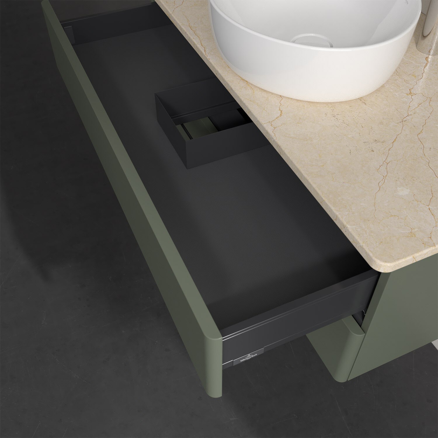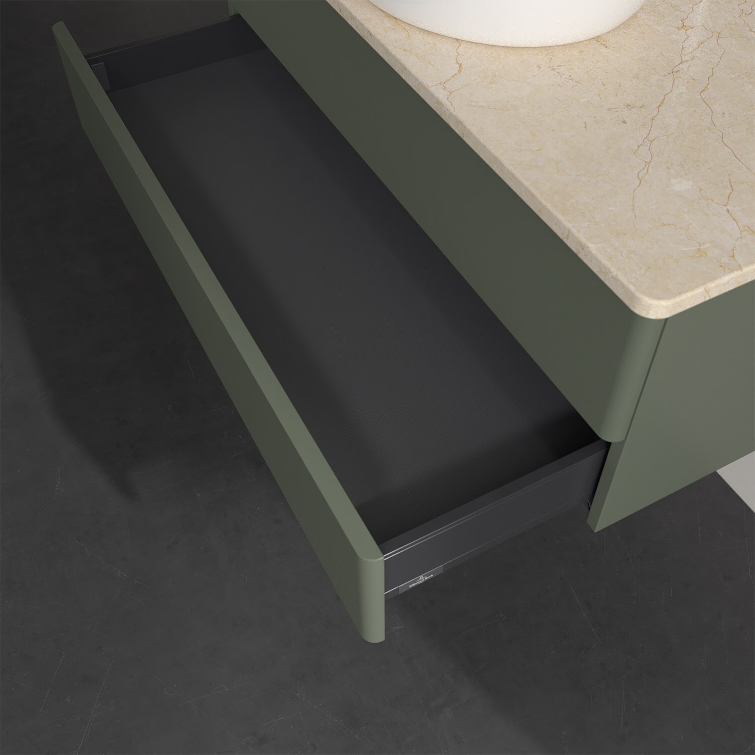 - kein Umfallen oder Verrutschen von Pflegeprodukten in den Schubladen dank rutschhemmendem Boden