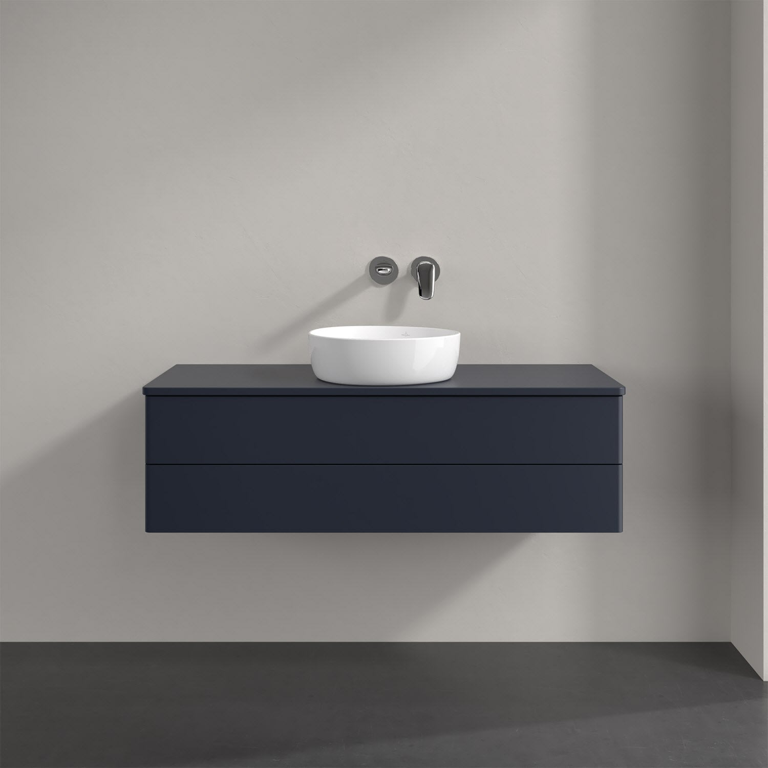 Villeroy & Boch Antao Waschbeckenunterschrank, 120 x 19 cm, 2 Auszüge, Fronten ohne Struktur, mit Hahnloch, für Waschtisch mittig
