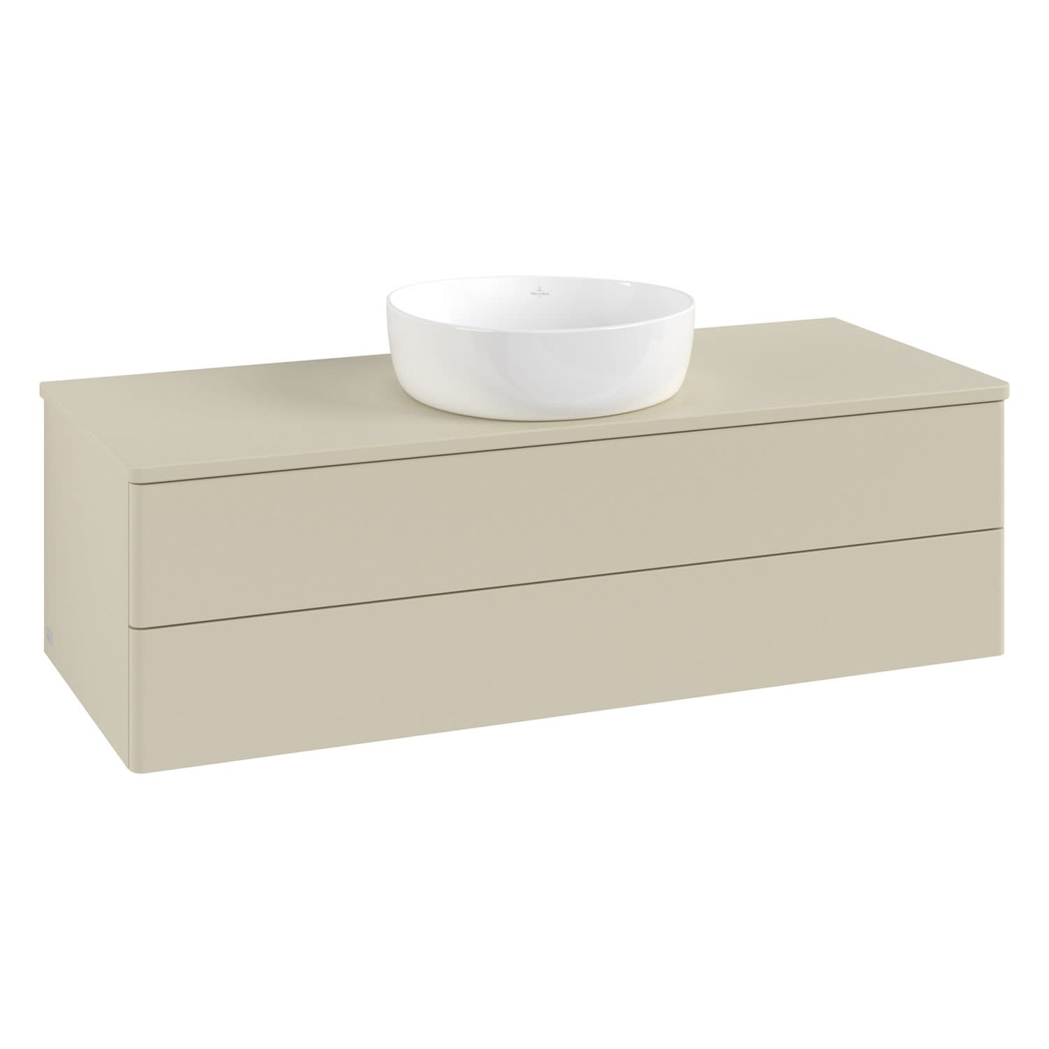 Villeroy & Boch Antao Waschbeckenunterschrank, 120 x 19 cm, 2 Auszüge, Fronten ohne Struktur, mit Hahnloch, für Waschtisch mittig
