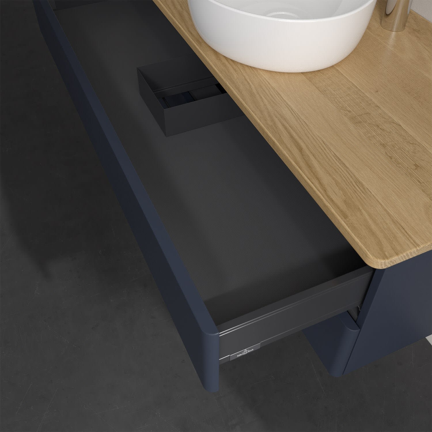 - kein Umfallen oder Verrutschen von Pflegeprodukten in den Schubladen dank rutschhemmendem Boden