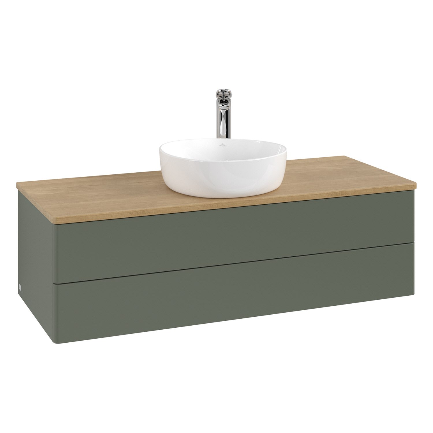 Villeroy & Boch Antao Waschbeckenunterschrank, 120 x 19 cm, 2 Auszüge, Fronten ohne Struktur, mit Hahnloch, für Waschtisch mittig