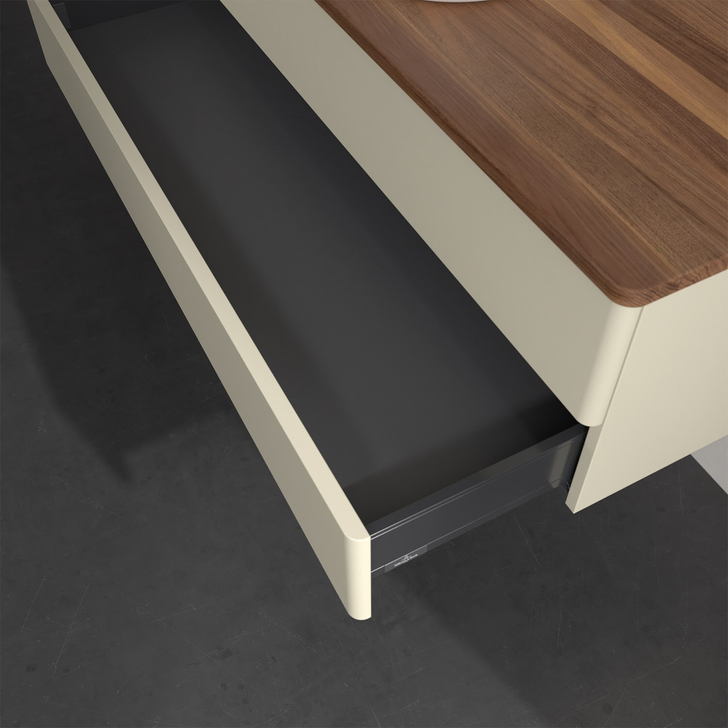 - kein Umfallen oder Verrutschen von Pflegeprodukten in den Schubladen dank rutschhemmendem Boden