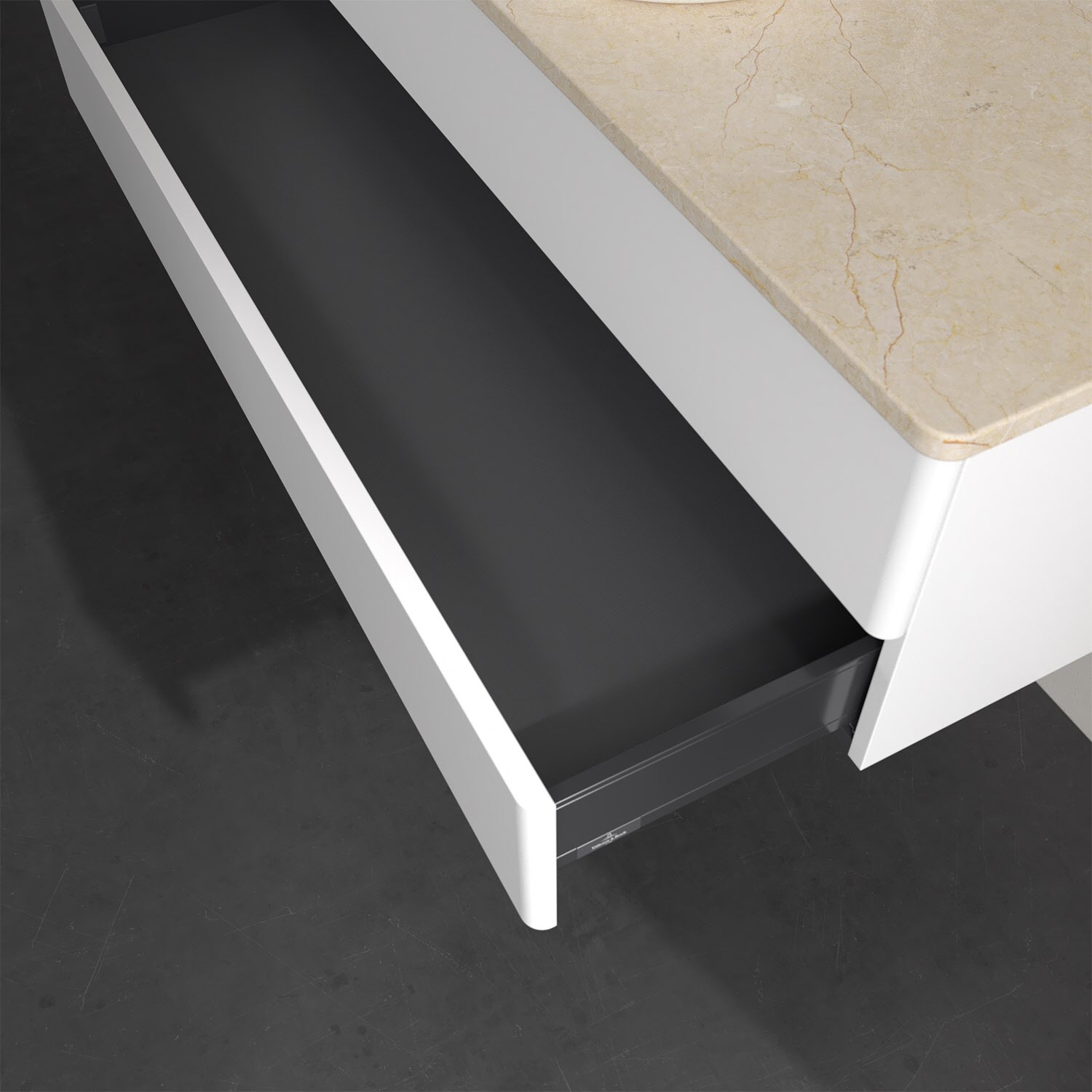 - kein Umfallen oder Verrutschen von Pflegeprodukten in den Schubladen dank rutschhemmendem Boden