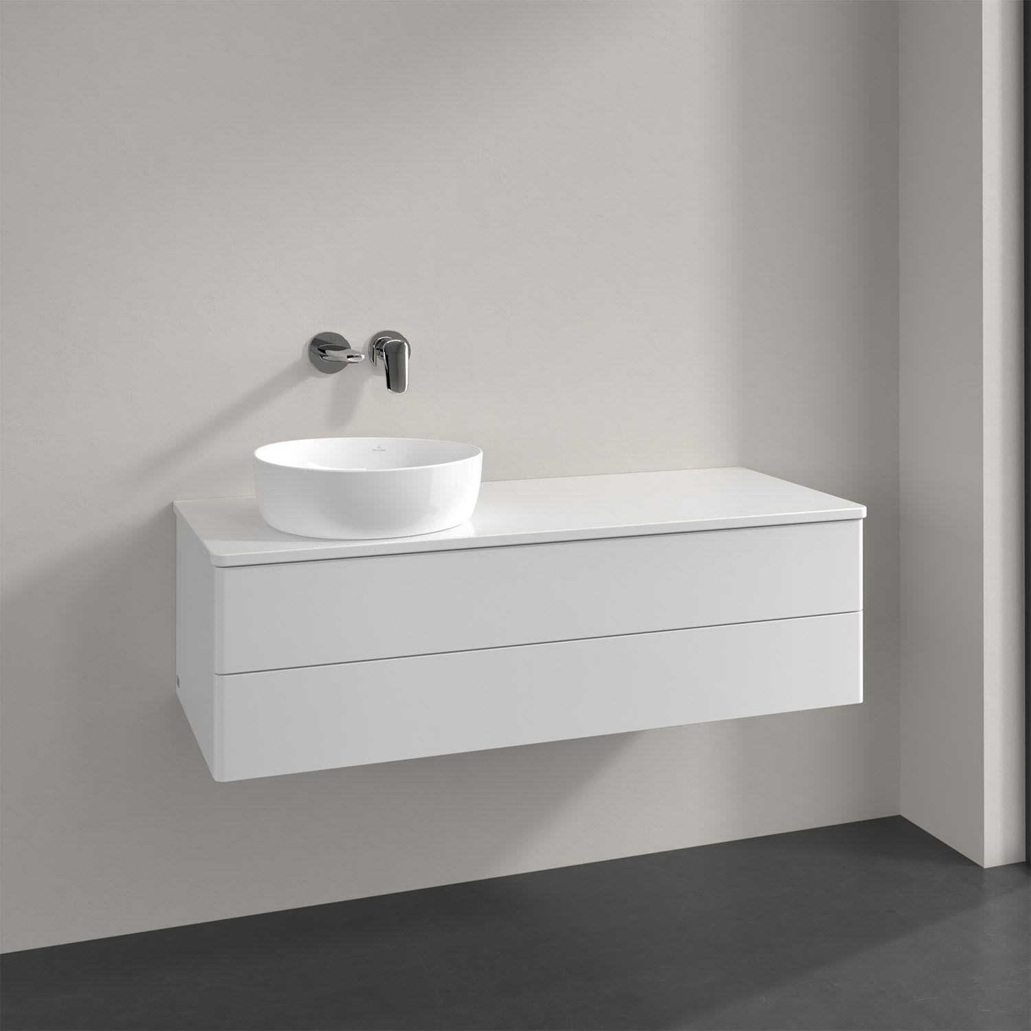 Villeroy & Boch Antao Waschbeckenunterschrank, 120 x 19 cm, 2 Auszüge, Fronten ohne Struktur, mit Hahnloch, für Waschtisch links