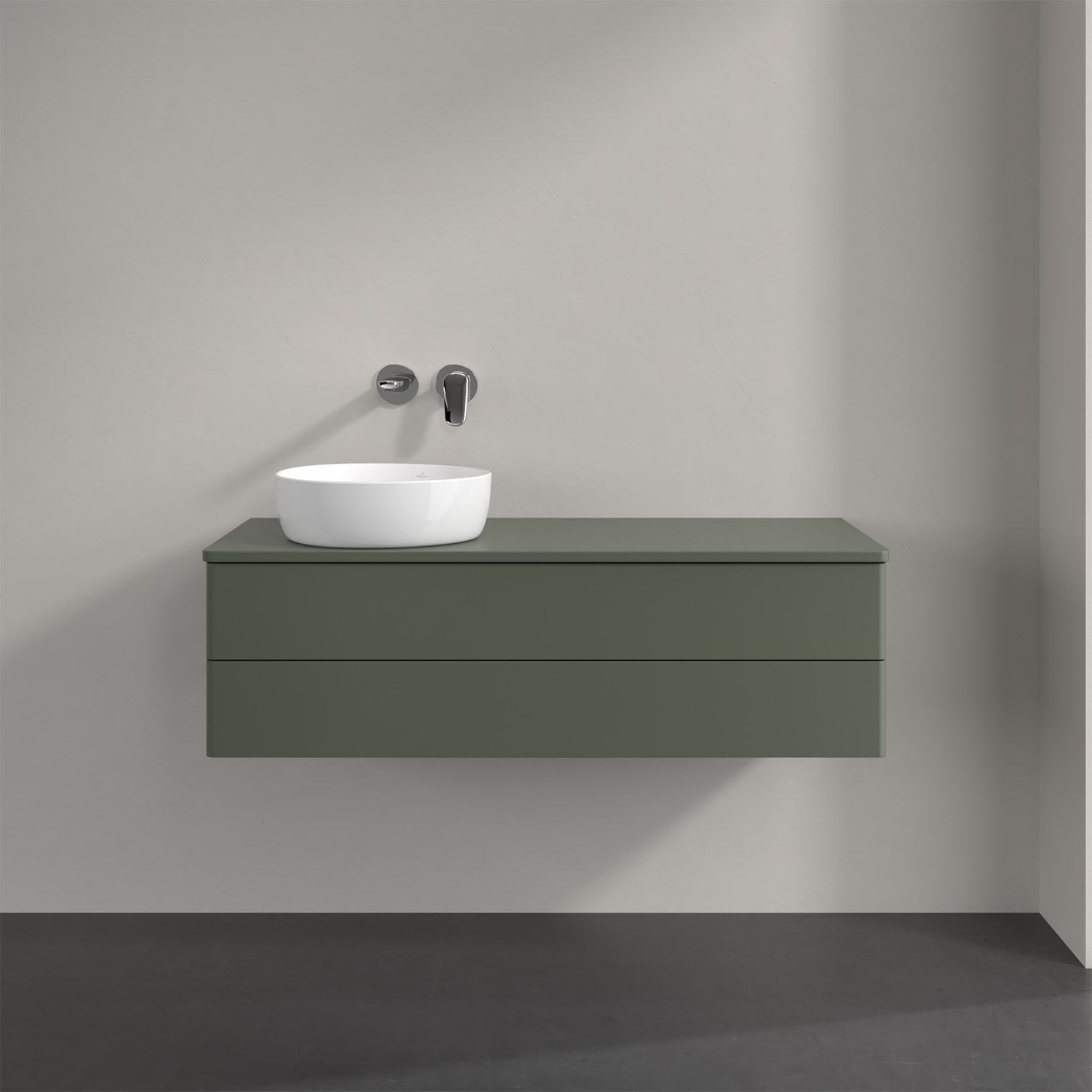 Villeroy & Boch Antao Waschbeckenunterschrank, 120 x 19 cm, 2 Auszüge, Fronten ohne Struktur, mit Hahnloch, für Waschtisch links