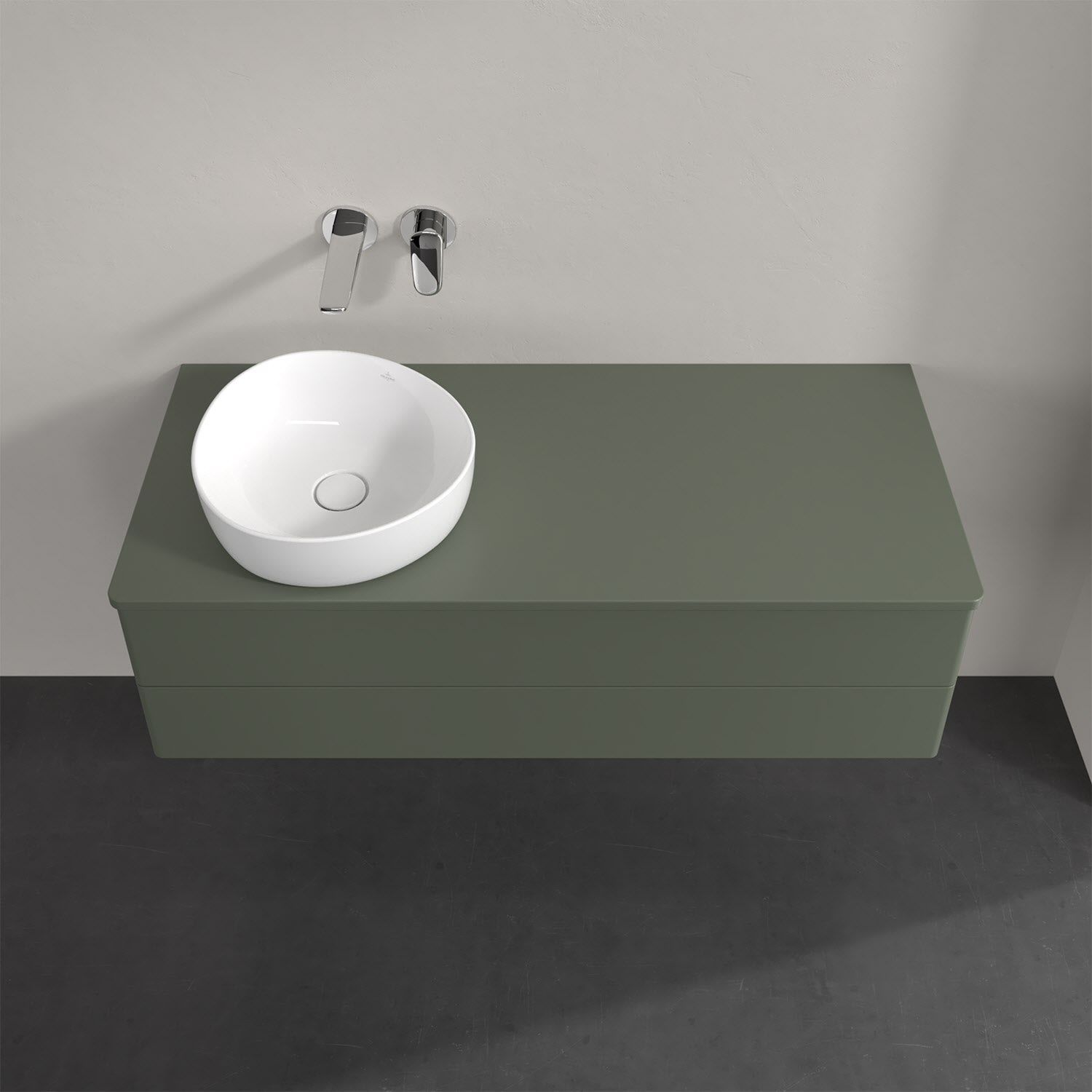 Für diesen Waschbeckenunterschrank stehen Ihnen Aufsatzwaschtische aus verschiedenen Serien zur Verfügung (siehe "Passliste" unter Downloads). Ein ausgewähltes Beispiel finden Sie im Zubehör. Den Waschtisch bitte separat mitbestellen.