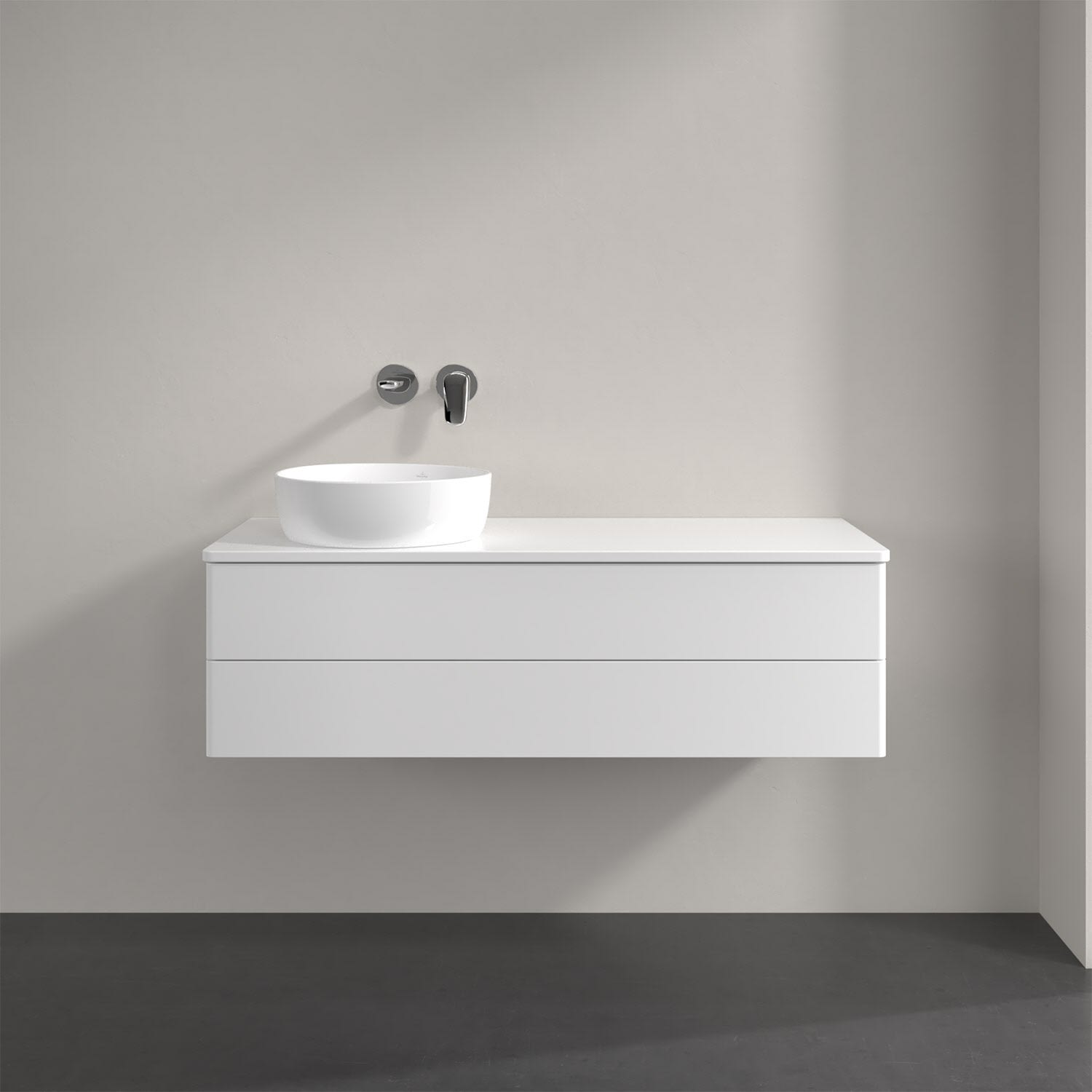 Villeroy & Boch Antao Waschbeckenunterschrank, 120 x 19 cm, 2 Auszüge, Fronten ohne Struktur, mit Hahnloch, für Waschtisch links