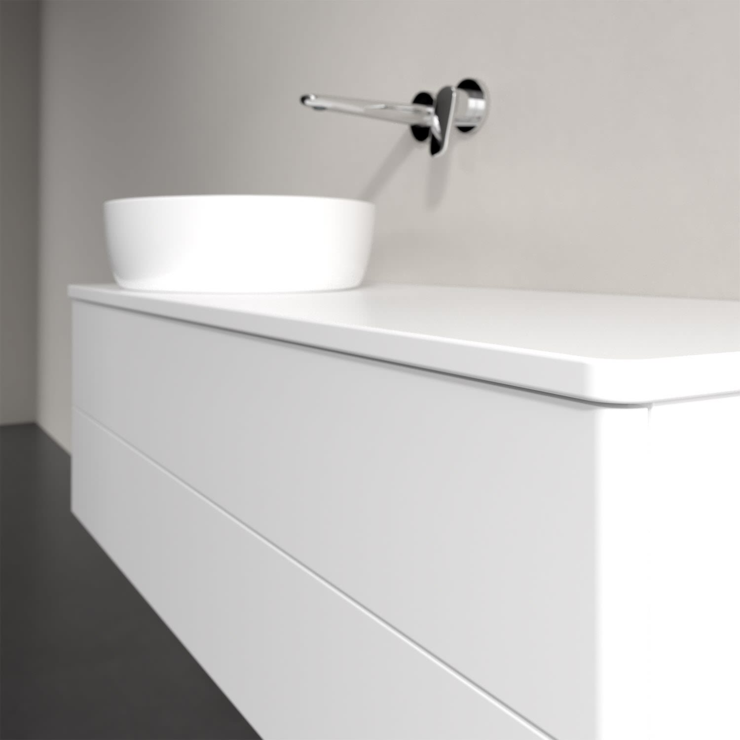 Für diesen Waschbeckenunterschrank stehen Ihnen Aufsatzwaschtische aus verschiedenen Serien zur Verfügung (siehe "Passliste" unter Downloads). Ein ausgewähltes Beispiel finden Sie im Zubehör. Den Waschtisch bitte separat mitbestellen.