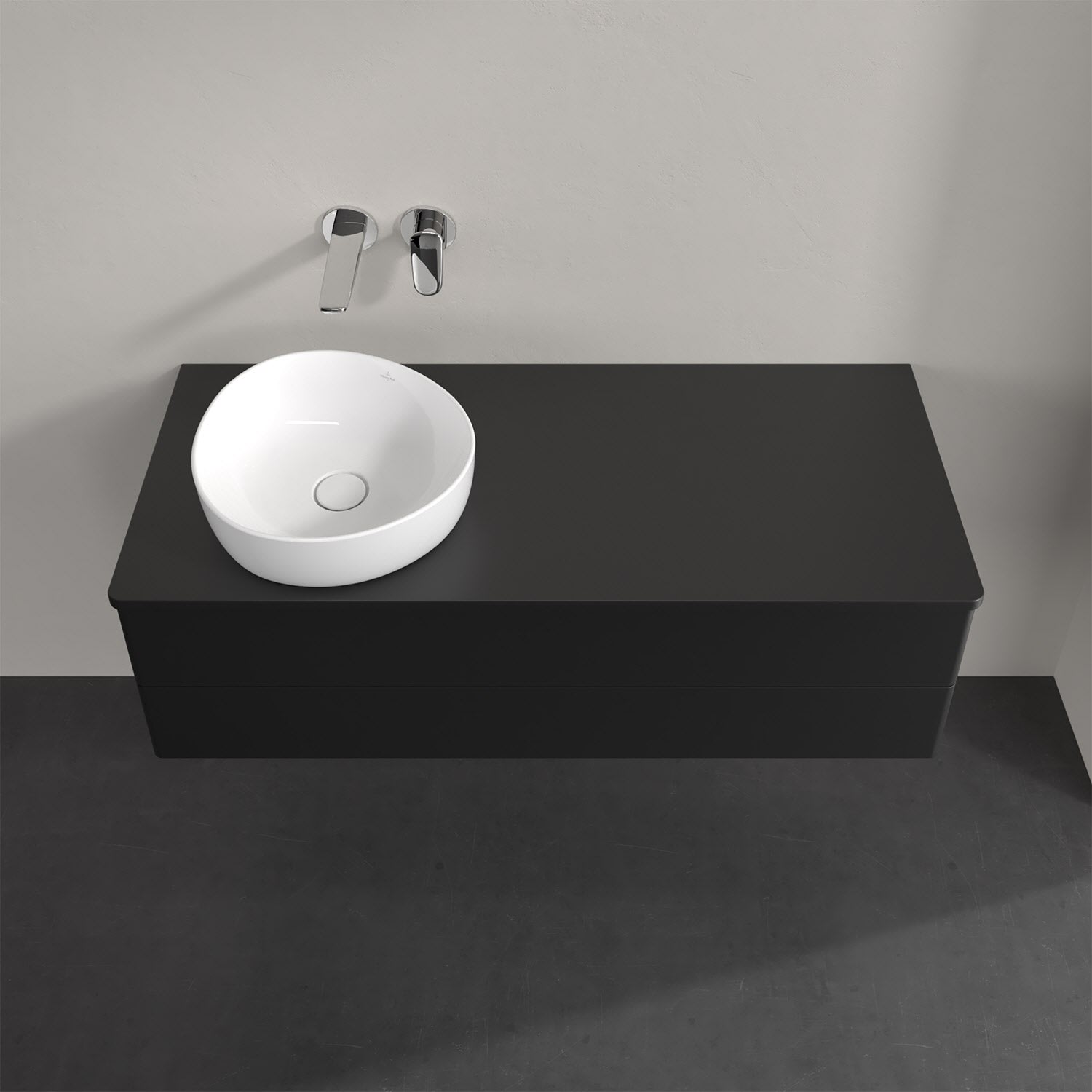 Für diesen Waschbeckenunterschrank stehen Ihnen Aufsatzwaschtische aus verschiedenen Serien zur Verfügung (siehe "Passliste" unter Downloads). Ein ausgewähltes Beispiel finden Sie im Zubehör. Den Waschtisch bitte separat mitbestellen.