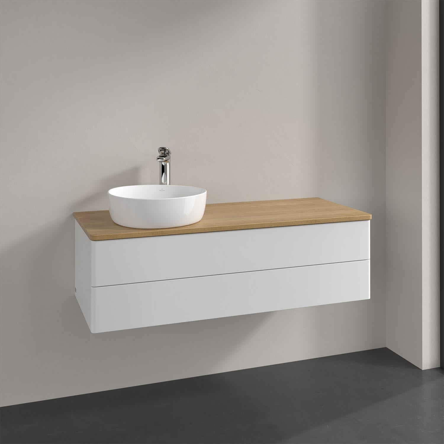 Villeroy & Boch Antao Waschbeckenunterschrank, 120 x 19 cm, 2 Auszüge, Fronten ohne Struktur, mit Hahnloch, für Waschtisch links