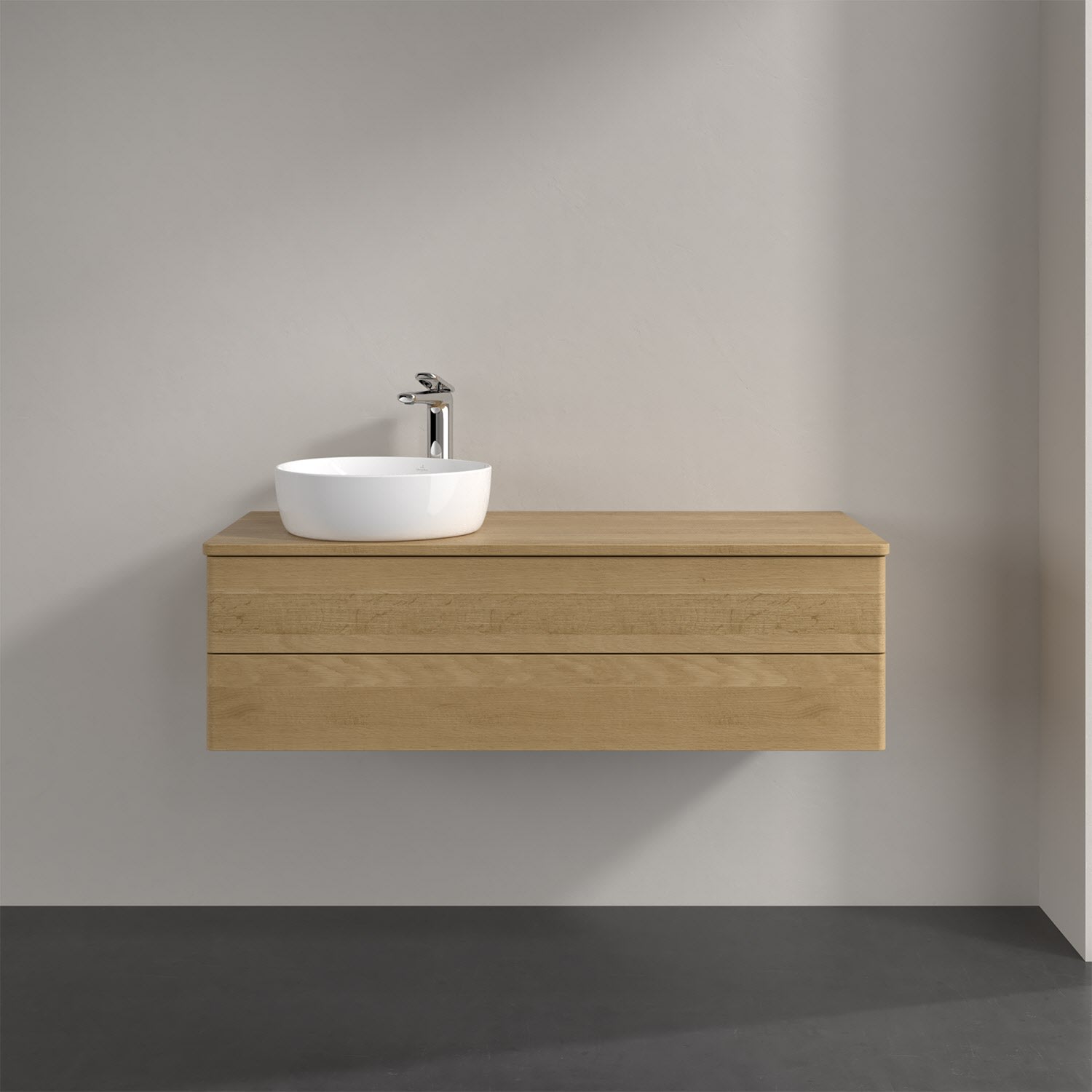 Villeroy & Boch Antao Waschbeckenunterschrank, 120 x 19 cm, 2 Auszüge, Fronten ohne Struktur, mit Hahnloch, für Waschtisch links