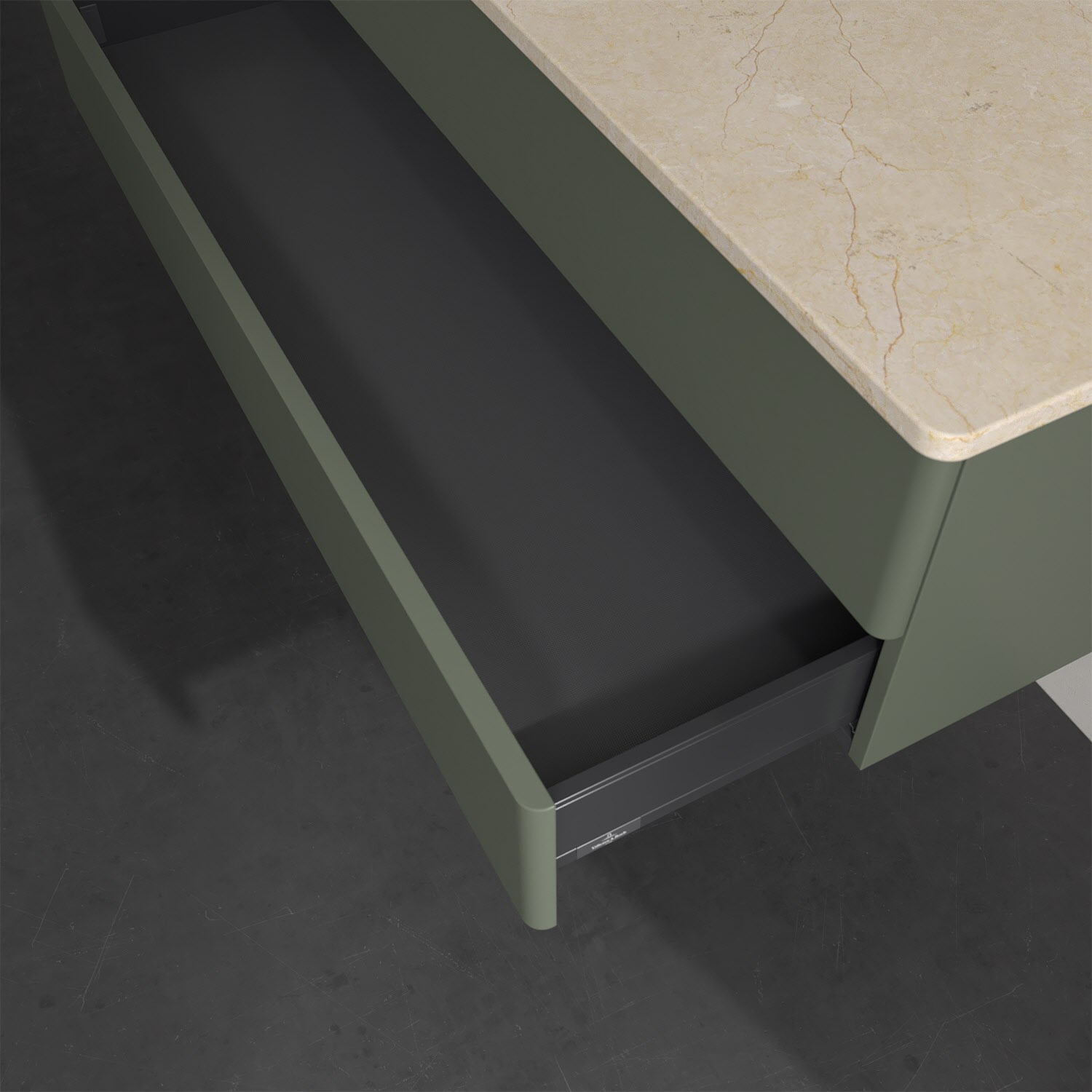 - kein Umfallen oder Verrutschen von Pflegeprodukten in den Schubladen dank rutschhemmendem Boden