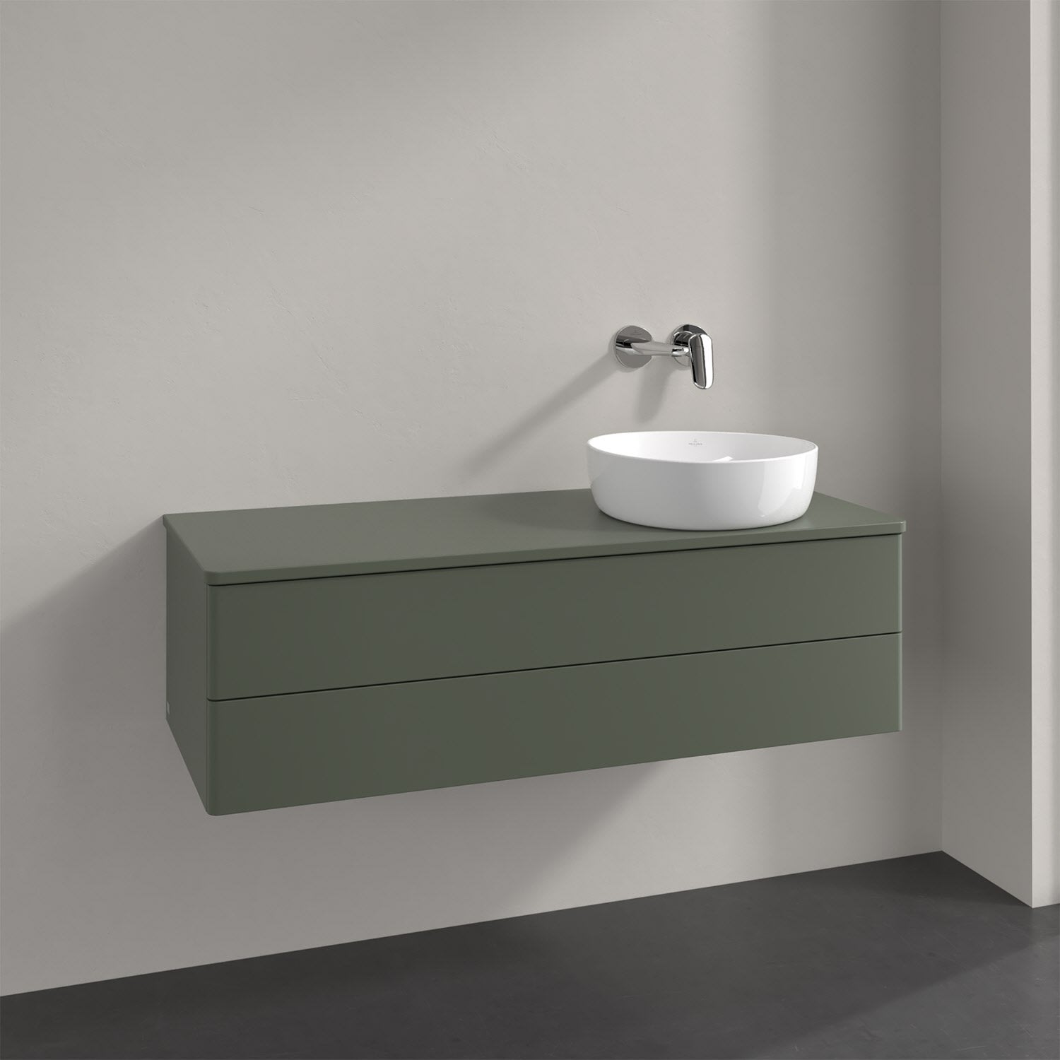 Villeroy & Boch Antao Waschbeckenunterschrank, 120 x 19 cm, 2 Auszüge, Fronten ohne Struktur, mit Hahnloch, für Waschtisch rechts