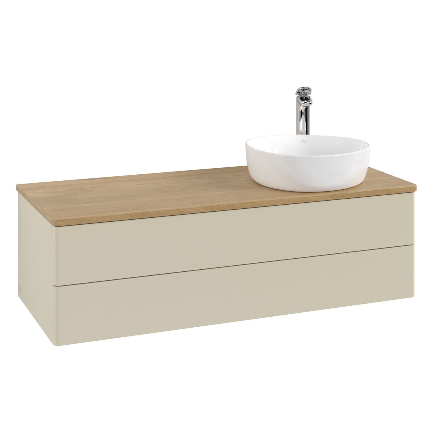 Villeroy & Boch Antao Waschbeckenunterschrank, 120 x 19 cm, 2 Auszüge, Fronten ohne Struktur, mit Hahnloch, für Waschtisch rechts